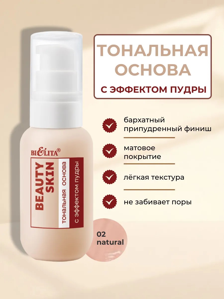 Тональная основа с эффектом пудры Beauty Skin тон 02 natural