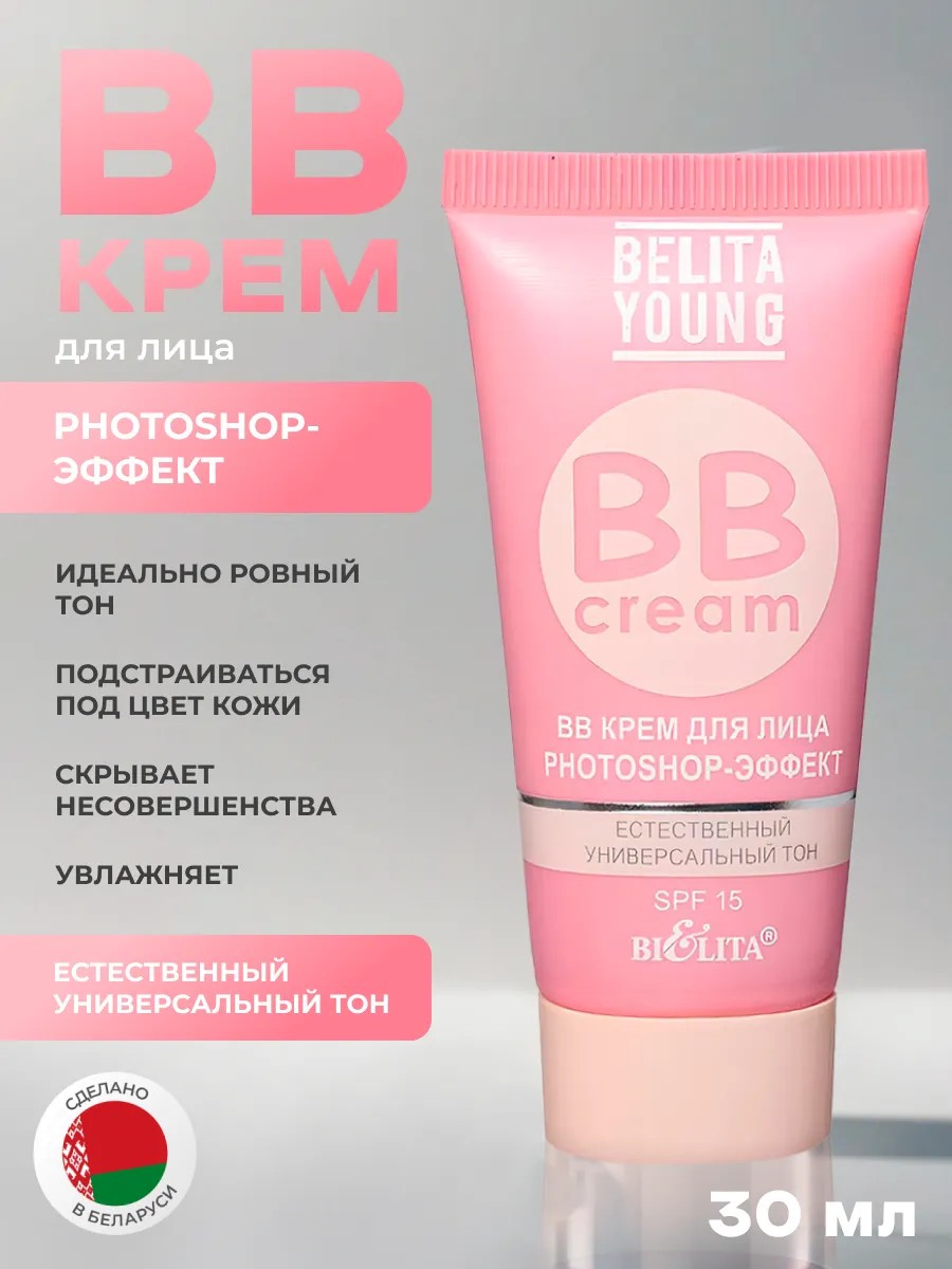 Тональный ВВ-крем Belita Young cream photoshop effect - идеальное средство линейки биби для молодой кожи любого типа, включая жирную и сухую, чувствительную или проблемную. Уникальная серия для создания макияжа в натуральных оттенках с мгновенным сияющим и тонирующим фотошоп эффектом. Такой бб тональник с спф защитой от уф – отличная солнцезащитная база для дневного ухода. Он не только увлажняет и выравнивает тон, но и создает прекрасную матирующую основу перед нанесением других видов косметики на лицо, шею и декольте. Не забивает поры, скрывает несовершенства. Благодаря увлажняющей формуле и легкой текстуре bb bielita может использоваться вокруг глаз. Универсальный продукт белорусского производителя Биелита контролирует жирность в течение дня, делает ваш образ естественным, сохраняя матовый финиш. Производитель: СП "Белита" ООО. 220089, Республика Беларусь, г.Минск, ул. Декабристов, 29а