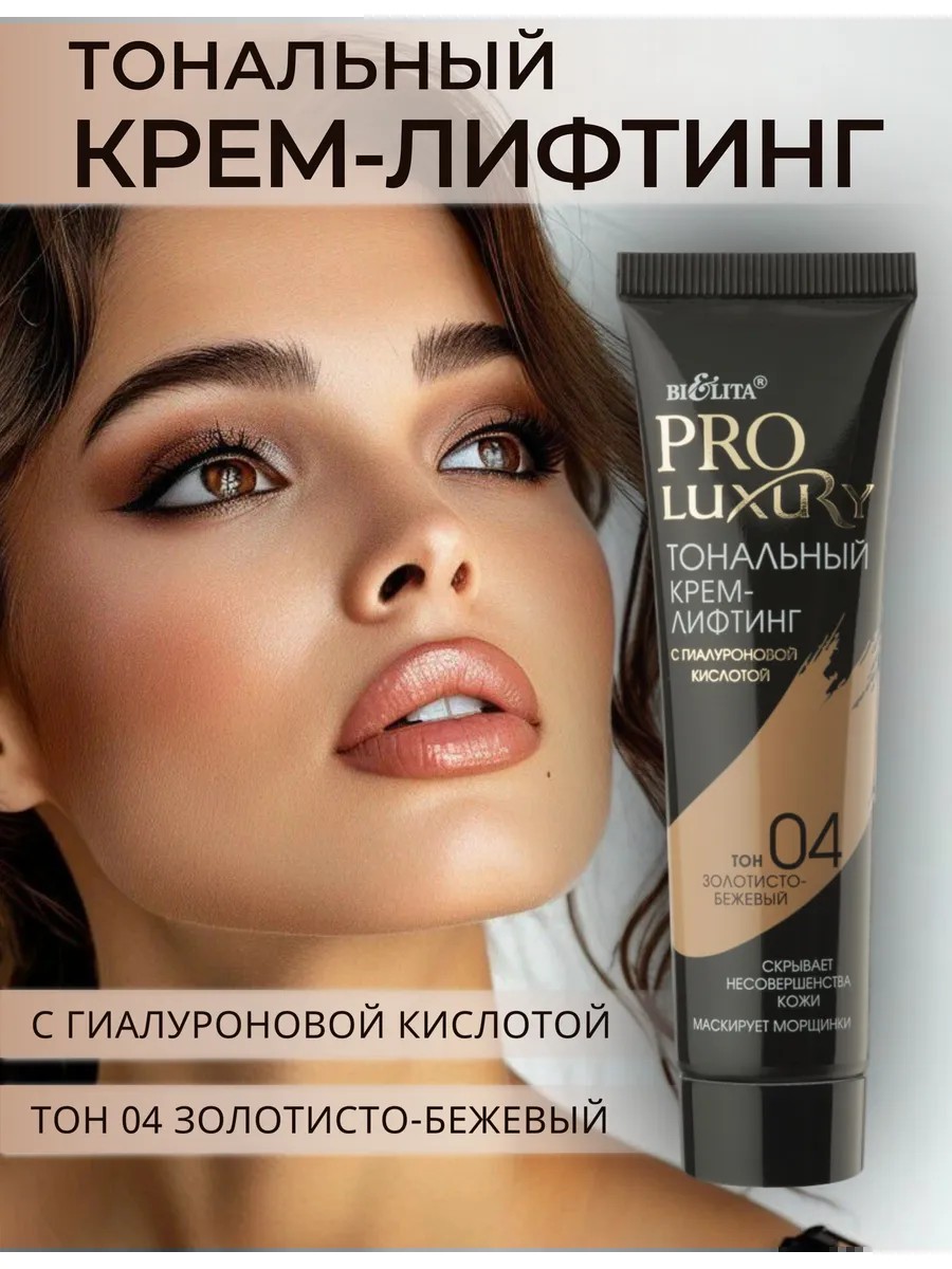 Тональный крем ProLuxury Белита с гиалуроновой кислотой. Тоналка для лица содержит уникальную формулу, которая не только придает коже идеальный оттенок, но и ухаживает за ней, делая ее более упругой и сияющей. Тональник сочетает в себе 100% натуральные пигменты, которые подстраиваются под естественный тон кожи, и комплекс активных компонентов, необходимых для создания идеальной кожи. Комплекс активных компонентов скрывает несовершенства кожи, выравнивая ее тон, маскирует морщинки, обеспечивает лифтинг-эффект. Крем тональный не создает эффекта маски и не блокирует поры. Вы можете быть уверены, что ваша кожа будет выглядеть естественно и свежо весь день. Кроме того, тональный крем белорусский не стирается от прикосновений и не оставляет пятен на одежде, что делает его идеальным выбором для повседневного использования. Тональный крем белита ProLuxury - это не просто тональный крем, это инструмент для создания идеального макияжа и ухода за кожей одновременно. Белорусская косметика BIELITA выбор многих покупателей, попробуй и ты!