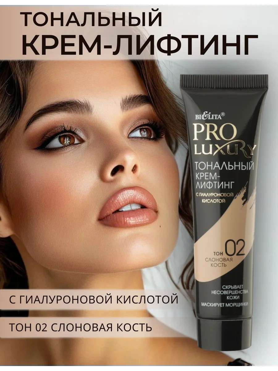 Тональный крем ProLuxury Белита с гиалуроновой кислотой. Тоналка для лица содержит уникальную формулу, которая не только придает коже идеальный оттенок, но и ухаживает за ней, делая ее более упругой и сияющей. Тональник сочетает в себе 100% натуральные пигменты, которые подстраиваются под естественный тон кожи, и комплекс активных компонентов, необходимых для создания идеальной кожи. Комплекс активных компонентов скрывает несовершенства кожи, выравнивая ее тон, маскирует морщинки, обеспечивает лифтинг-эффект. Крем тональный не создает эффекта маски и не блокирует поры. Вы можете быть уверены, что ваша кожа будет выглядеть естественно и свежо весь день. Кроме того, тональный крем белорусский не стирается от прикосновений и не оставляет пятен на одежде, что делает его идеальным выбором для повседневного использования. Тональный крем белита ProLuxury - это не просто тональный крем, это инструмент для создания идеального макияжа и ухода за кожей одновременно. Белорусская косметика BIELITA выбор многих покупателей, попробуй и ты!
