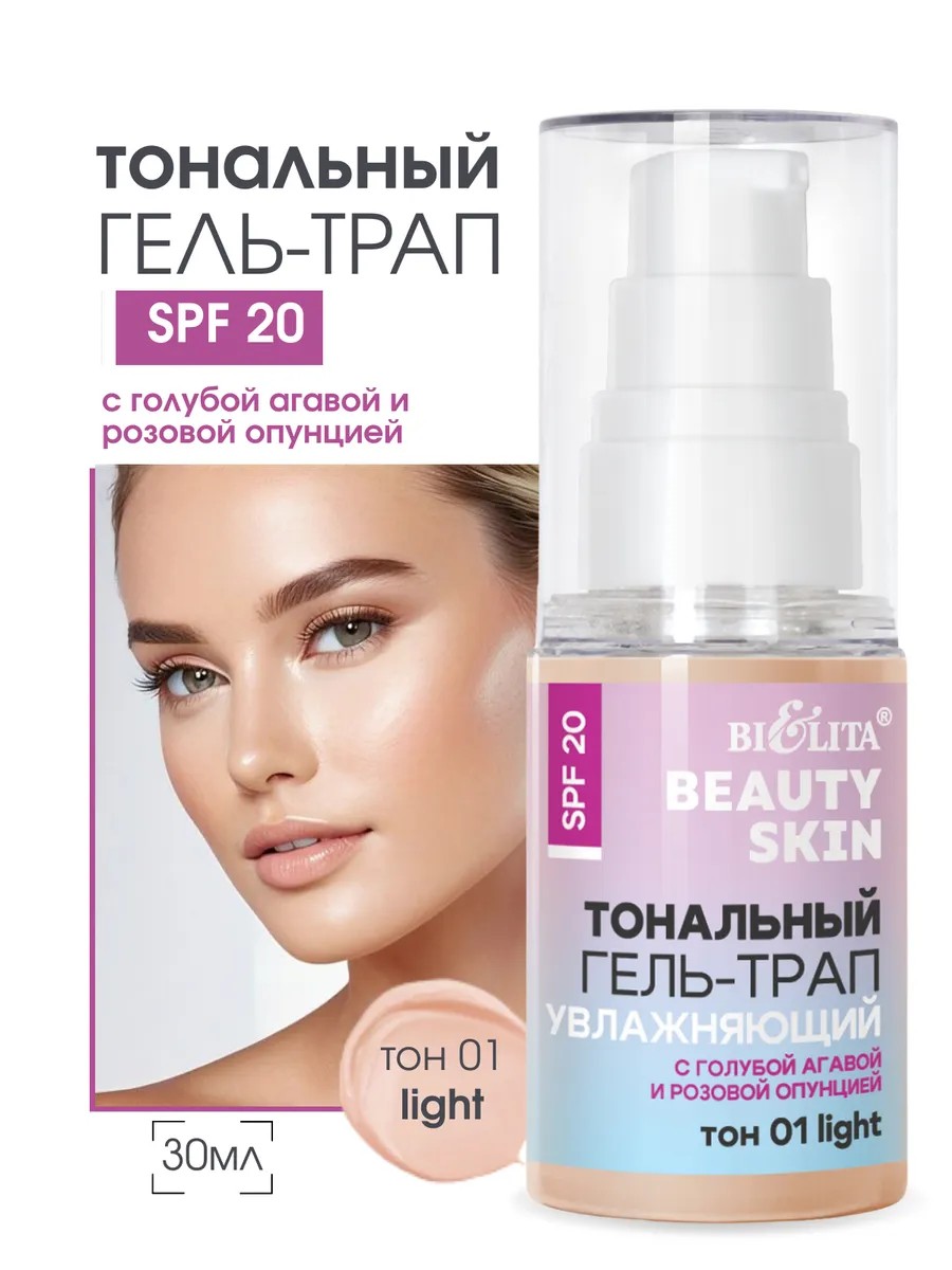 БЕЛИТА Тональный увлажняющий гель-трап для лица SPF 20 тон 01 light