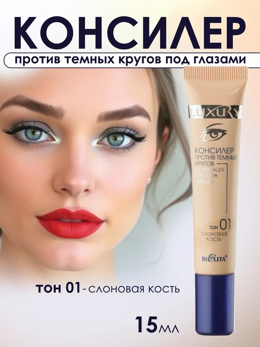 Консилер против темных кругов, тон 01- слоновая кость, с нежной кремовой текстурой превосходно выравнивает тон кожи, маскирует темные круги и визуально освежает лицо. Высокопигментированная формула обладает прекрасной маскирующей способностью и ухаживает за кожей.