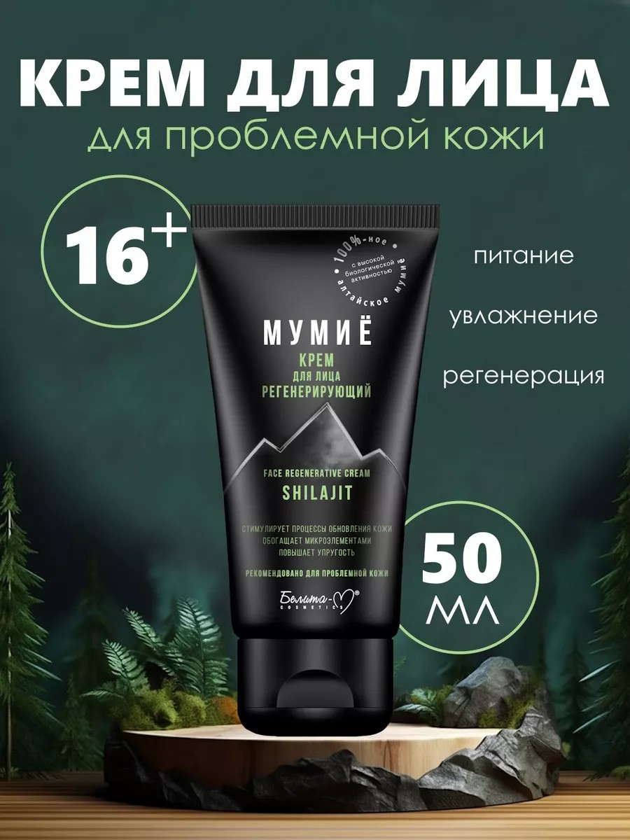 Крем для лица Регенерирующий на основе натурального алтайского мумиё стимулирует регенерацию кожи, увлажняет, питает и тонизирует, делает кожу упругой и эластичной, придает ей свежий и сияющий вид. Действие: обеспечивает глубокое увлажнение кожи; насыщает питательными элементами; придает эластичность; делает кожу гладкой и бархатистой.