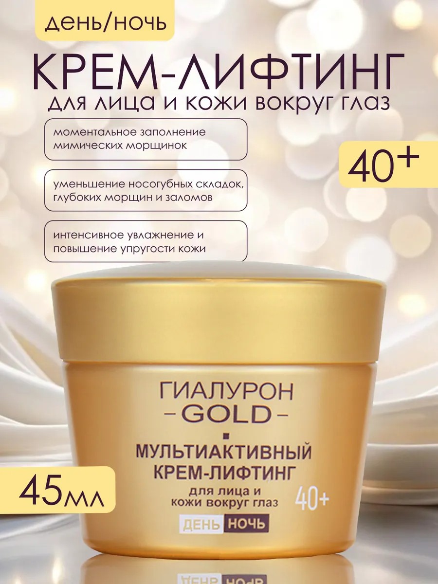 Сверхсовременная богатая формула обеспечивает коже полноценный всесторонний уход 24 часа: глубокое увлажнение, питание и восстановление, замедление возрастных изменений в разных слоях эпидермиса, а также мощный и продолжительный эффект подтяжки, сравнимый с эффектом лифтинга золотыми нитями.