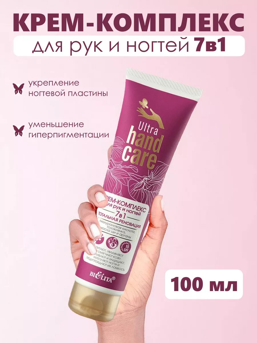 The 7-in-1 Hand and Nail Cream Complex "Total Renovation" has a regenerating effect on the skin of the hands and nails, as a result of which nails are strengthened, hands become soft and velvety.