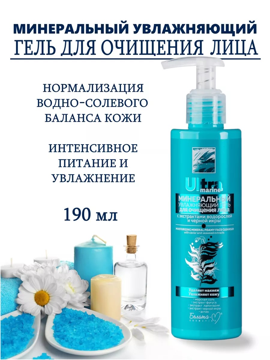 Mineral Moisturizing Facial Cleansing Gel with Algae and Black Caviar Extracts - This gentle daily cleanser gently removes makeup and impurities while maintaining the skin's natural moisture level. It helps normalize the hydrolipid balance, does not leave a feeling of dryness and tightness after use, and leaves the skin soft and supple. Active ingredients: Sea Minerals: sea salt, seaweed extracts: Fucus Vesiculosus, Laminaria Hyperborea, Laminaria Digitata. Caviar Complex: hydrolyzed actin, natural caviar hydrolyzate, Fucus Vesiculosus extract. Hydrovance Moisturizing Complex, Olive Oil, Allantoin.