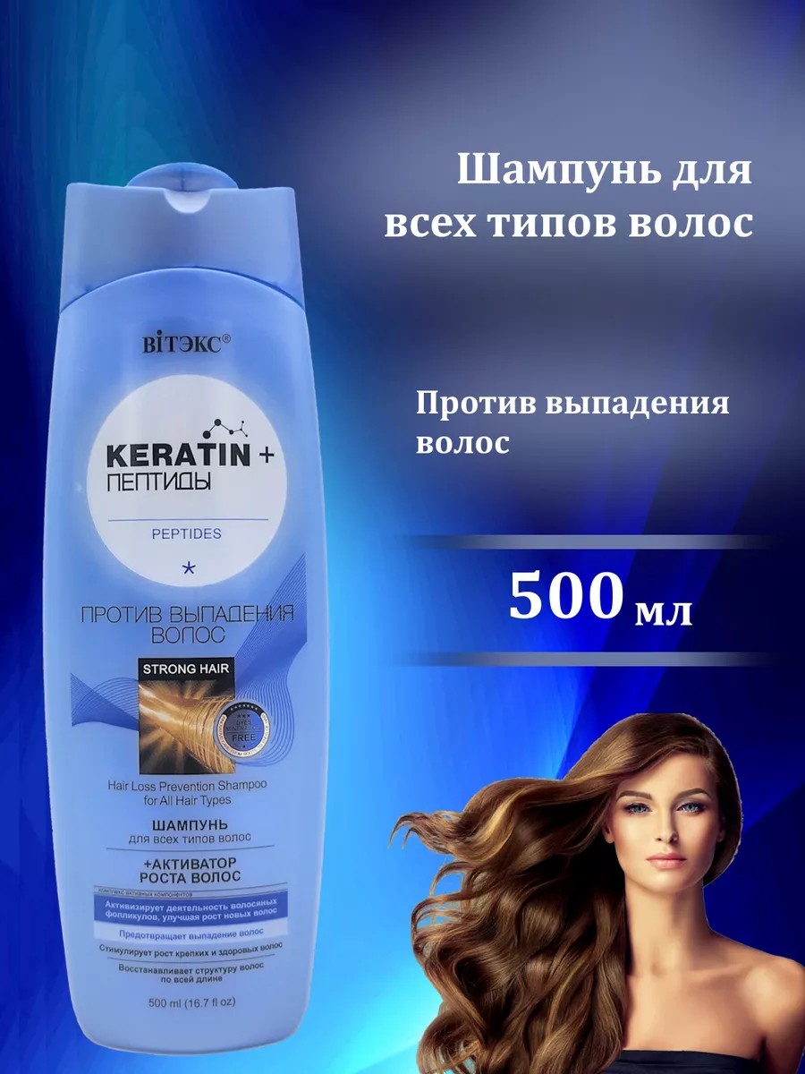 This shampoo gently cleanses and restores hair structure along the entire length. It stimulates blood flow to hair follicles, improving hair appearance. A hair growth activator reduces hair loss and promotes growth. Directions: Apply shampoo to wet hair, massage into lather, and rinse thoroughly. For best results, use with KERATIN+ Peptide Conditioner.