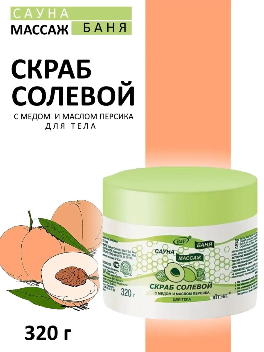 | Комплектация | Скраб солевой с медом и маслом персика для тела 320 гр |