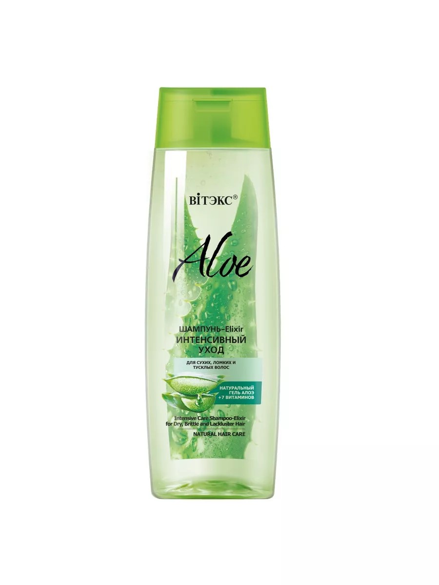 Шампунь Белита - Витэкс "Aloe и 7 витаминов", Elixir, Интенсивный уход для сухих и ломких волос, 400 мл. Шампунь - Elixir ИНТЕНСИВНЫЙ УХОД для сухих, ломких и тусклых волос питает, увлажняет, восстанавливает структуру, придает жизненную силу и блеск! Максимально натуральная прозрачная формула органично соединяет эффективные очищающие свойства шампуня и глубокое действие увлажняющего эликсира, чтобы одновременно подарить идеальную чистоту и интенсивный уход волосам, склонным к сухости, ломкости и тусклости. Активные компоненты для красоты волос: ГЕЛЬ АЛОЭ ВЕРА содержит более 200 активных компонентов (витаминов, минералов, аминокислот, ферментов и т. д. ), благодаря чему исключительно глубоко увлажняет и питает волосы и кожу головы, устраняет дискомфорт, зуд и стянутость кожи, восстанавливает структуру волос, препятствует ломкости, пересушиванию и появлению секущихся кончиков. 7 ВИТАМИНОВ - МАКСИМАЛЬНАЯ ЭФФЕКТИВНОСТЬ: Витамины A, C, и F, заключенные в нано - липосомы, обеспечивают биодоступность и стабильность активных компонентов для более интенсивного и длительного воздействия даже в глубоких слоях. Витамин А помогает сальным железам вырабатывать необходимый секрет, который защищает волосы от пересушивания и выпадения, обеспечивает здоровое живое сияние. Витамин С обладает мощным антиоксидантным действием, борется с бактериями на коже головы, защищает от перхоти, способствует выработке коллагена для улучшения прочности волос. Витамин F усиливает прочность волосяного стержня, обеспечивает профилактику повреждений волос, поддерживает здоровье кожи головы. Витамин B3 (Niacinamide) восстанавливает, укрепляет структуру волосяного стержня, возвращает волосам здоровый блеск, мягкость, прочность, помогает предотвратить потерю влаги. Провитамин В5 (D - пантенол) питает волосяные луковицы, реконструирует микроповреждения в структуре волос, обеспечивает защиту от разрушающего влияния внешних факторов, придаёт упругость, гладкость и здоровый блеск