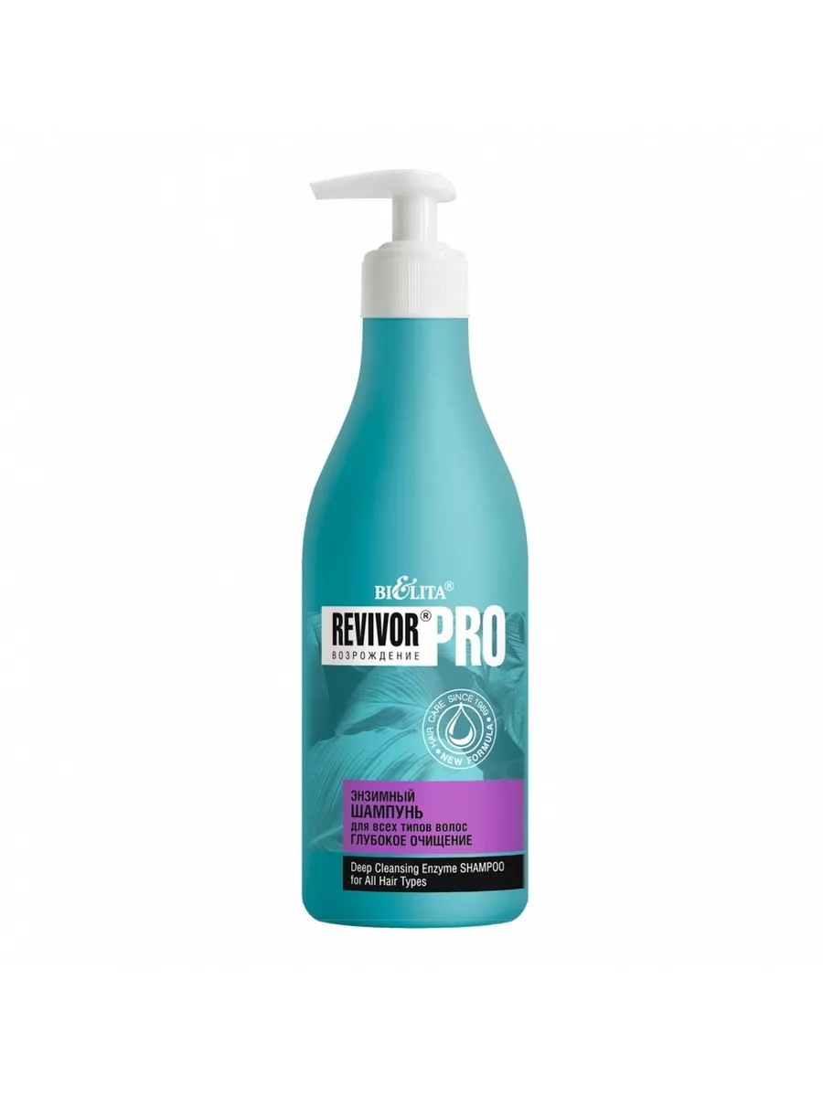 Шампунь Белита - Витекс "Revivor", Pro, Глубокое очищение, энзимный, для всех типов волос, 500 мл. Энзимный шампунь разработан специально для максимально глубокого очищения волос и кожи головы, полностью удаляет следы воска, пасты, геля, лака и других укладочных средств, а также кондиционеров и загрязнений окружающей среды. Придаёт волосам реальную чистоту. Энзимы, входящие в состав шампуня, прекрасно очищают волосы, не повреждая их. Применение: нанесите на влажные волосы, вспеньте, смойте водой. Шампунь для всех типов волос энзимный "Глубокое очищение" REVIVOR PRO ВОЗРОЖДЕНИЕ. Энзимный шампунь разработан специально для максимально глубокого очищения волос и кожи головы, полностью удаляет следы воска, пасты, геля, лака и других укладочных средств, а также кондиционеров и загрязнений окружающей среды. Придаёт волосам реальную чистоту. Энзимы, входящие в состав шампуня, прекрасно очищают волосы, не повреждая их. Использовать не чаще одного раза в неделю или по мере необходимости Срок годности: 36; Состав: Вода, лауретсульфат натрия, кокамидопропилбетаин, хлорид натрия, кокамид MIPA, лаурет - 4, поликватерниум - 7, парфюмерная композиция, ЭДТА динатрия, бензиловый спирт, метилхлоризотиазолинон, метилизотиазолинон, папаин, карбомер, 1,2 гександиол, каприлилгликоль, альгин; Пол: Женский; Тип волос: Для всех типов волос; Объем: 500; Эффект: Очищение; Класс опасности: Не опасен; Форма выпуска бьюти средства: Флакон с дозатором; Способ применения средства: Намочите волосы тёплой водой, нанесите небольшое количество шампуня на ладони и равномерно распределите его по коже головы и волосам. Вспеньте шампунь массирующими движениями, при необходимости оставьте на волосах на 1 - 2 минуты, затем тщательно смойте тёплой водой. При необходимости процедуру можно повторить. Для наилучшего эффекта рекомендуется использовать кондиционер после мытья. ;