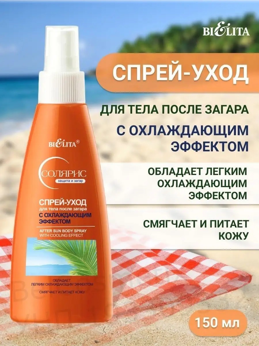 Спрей-уход для тела после загара с охлаждающим эффектом обеспечивает уход за кожей после длительного пребывания на солнце.