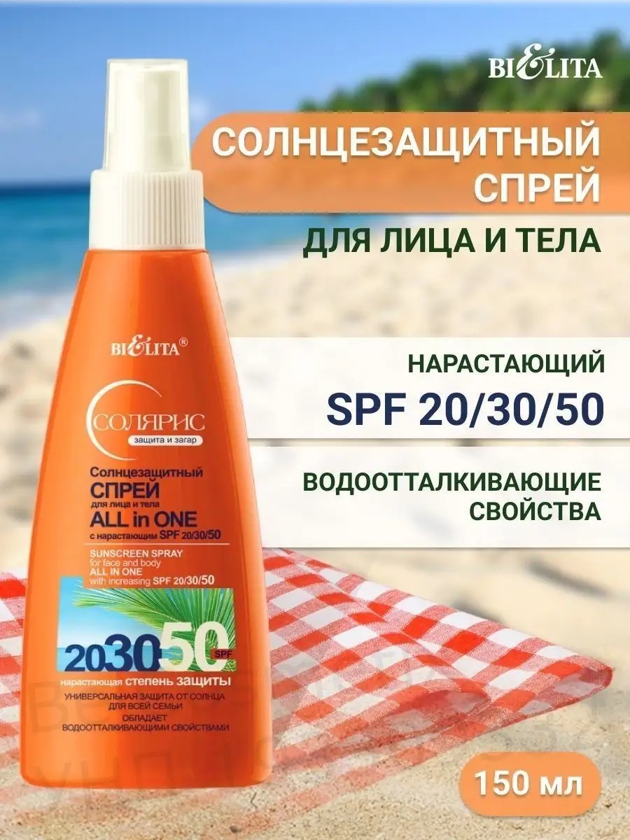 Солнцезащитный спрей для лица и тела ALL IN ONE с нарастающим SPF 20/30/50