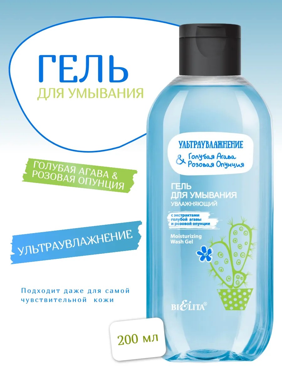 Гель для умывания увлажняющий Ультраувлажнение. Голубая агава & розовая опунция.