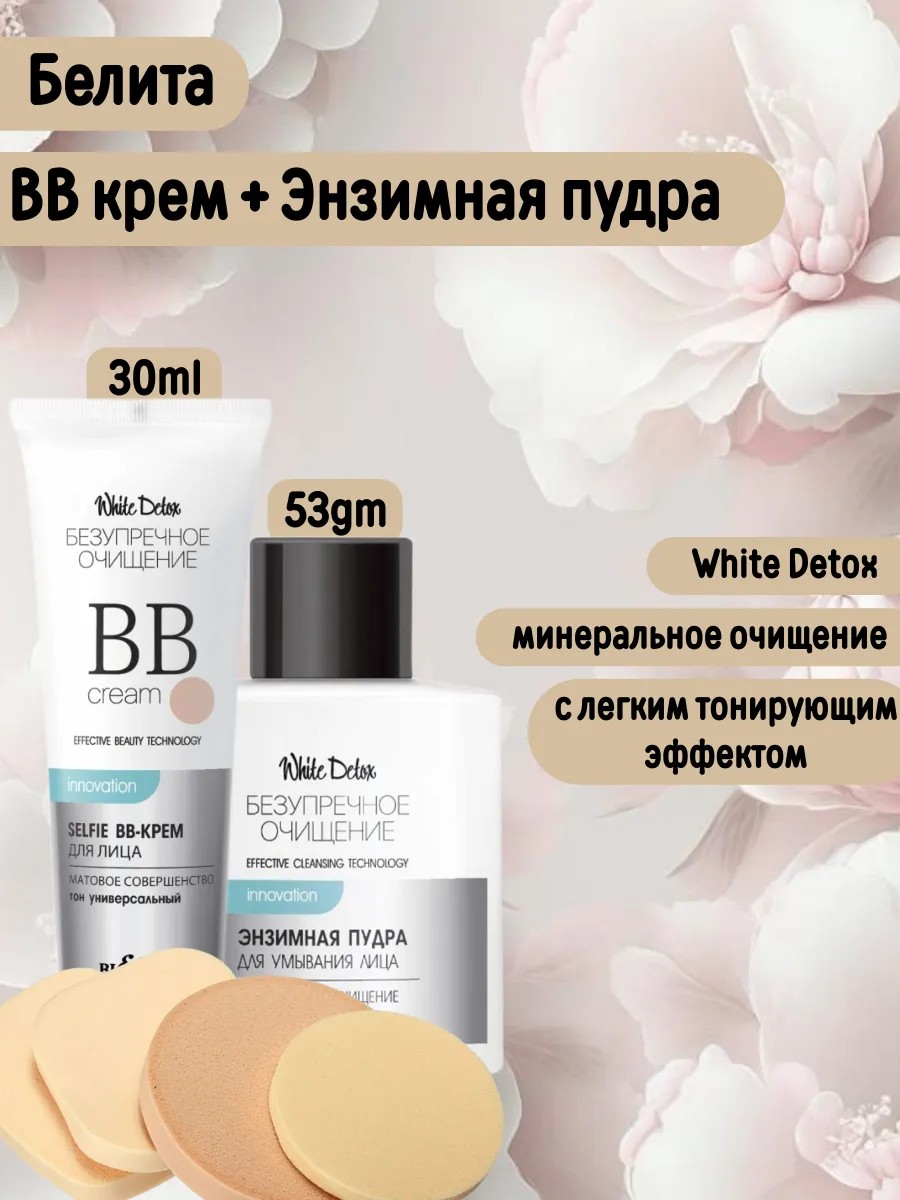 Белита Энзимная пудра White Detox+ Selfie ВВ-крем для лица+ спонж