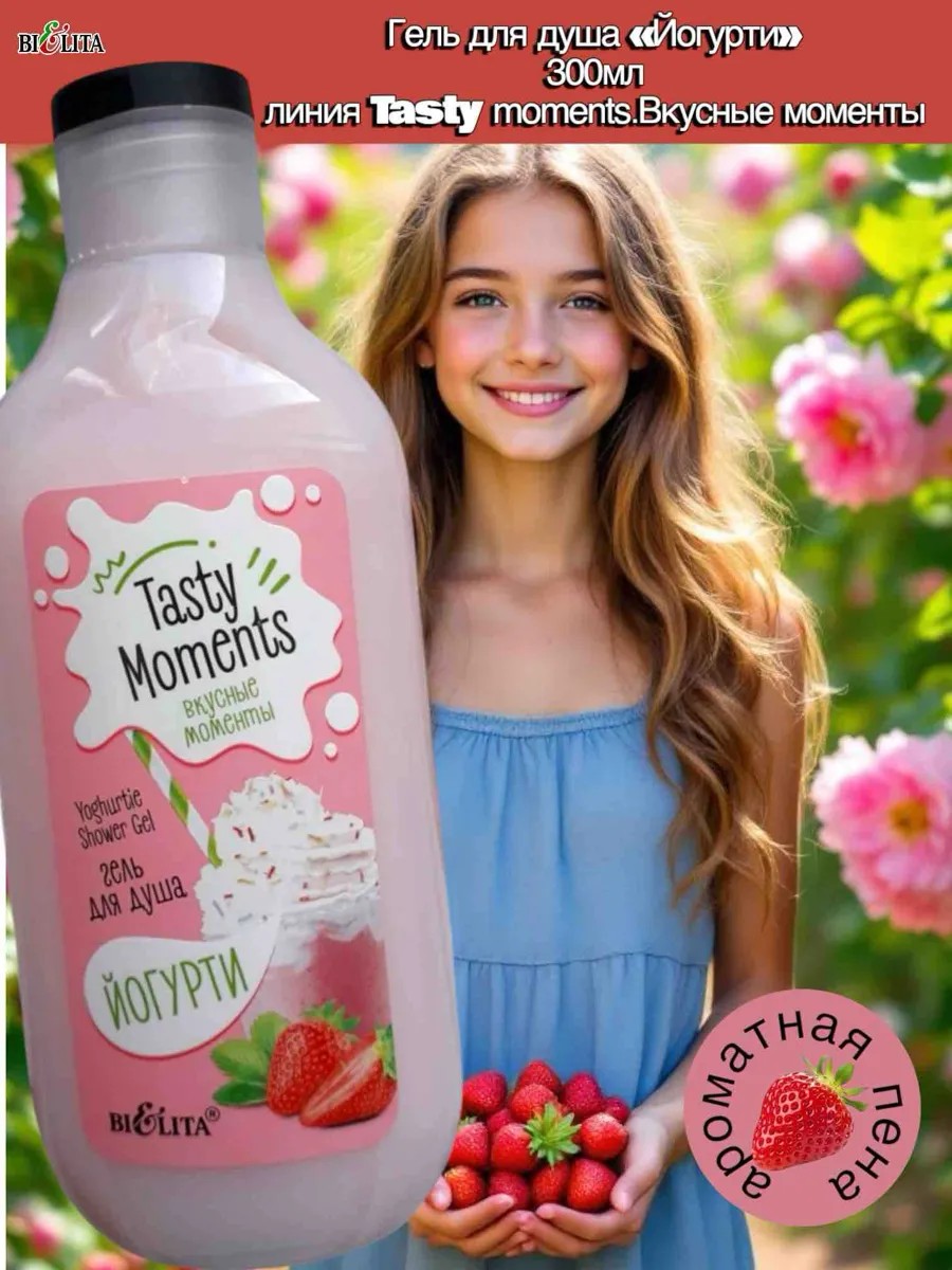 Для осуществления ваших самых нежных желаний мы представляем нашу сладкую разработку – гель для душа «Йогурти». Ароматная пена деликатно очищает кожу и дарит небывалое ощущение мягкости и нежности без пересушивания.