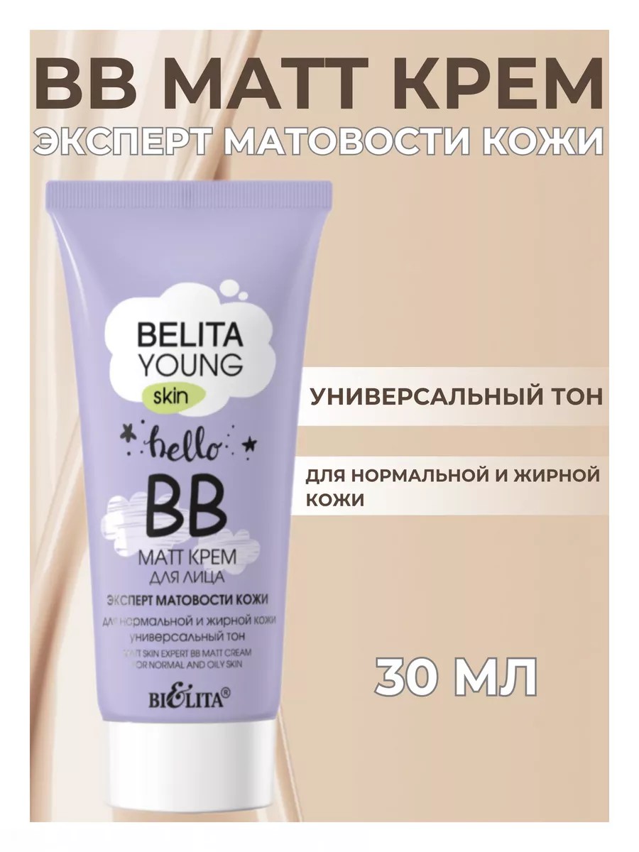 BB-крем матирующий Belita Young Skin Белита. ББ крем выравнивает микрорельеф и скрывает дефекты, создавая идеально гладкую поверхность. Благодаря специальной формуле, биби крем маскирует блеск и обеспечивает роскошный матовый финиш, который сохраняется на протяжении всего дня. Кроме того, тоналка обеспечивает красивый цвет лица, и подстраивается под тон вашей кожи. Ваше лицо будет выглядеть свежо и естественно в течение всего дня. Тональник подходит для нормальной и для жирной кожи. Применение: нанесите bb крем тональный на кожу лица легкими массажными движениями. Белорусская косметика BIELITA выбор многих покупателей, попробуй и ты!