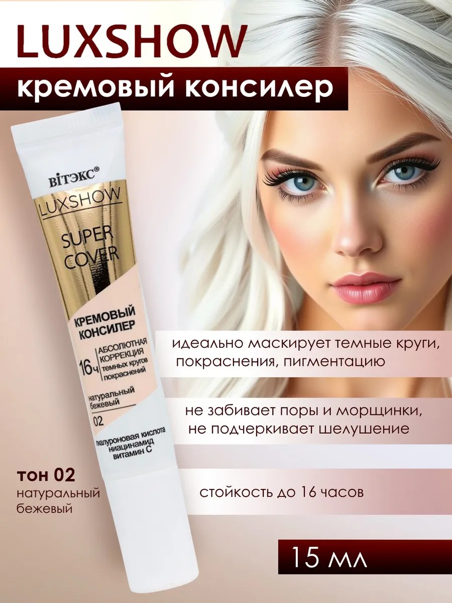 | Полное наименование товара | LuxShow Кремовый консилер Super Cover Абсолютная коррекция, тон 02 - натуральный бежевый, 15мл |