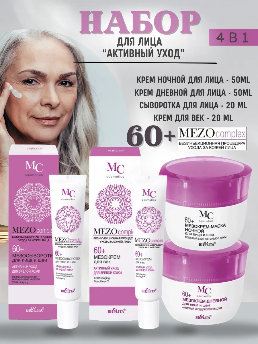A set of cosmetics from the Belita brand for facial skin care MEZOcomplex 60+