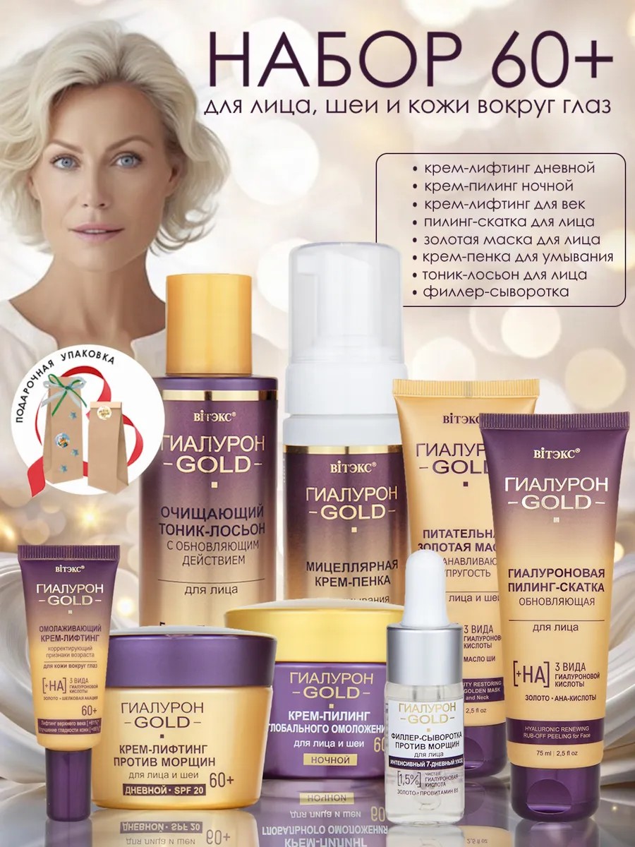 Косметический набор Гиалурон GOLD для зрелой кожи включает 8 средств: