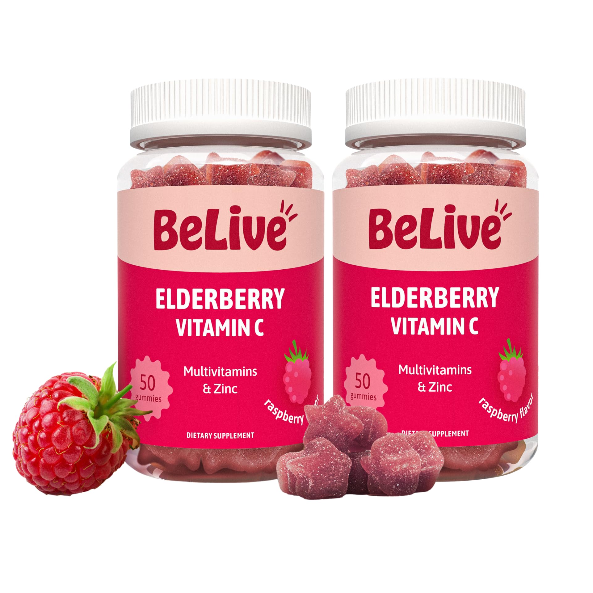 BeLive Elderberry Gummies with Zinc and Vitamin C - Immune Support Supplement with Vitamin D A E B12 - Gummies for Healthy Bones & Teeth Vegan Keto & Non-GMO - Raspberry Flavor | 2-Pack 2 Pack