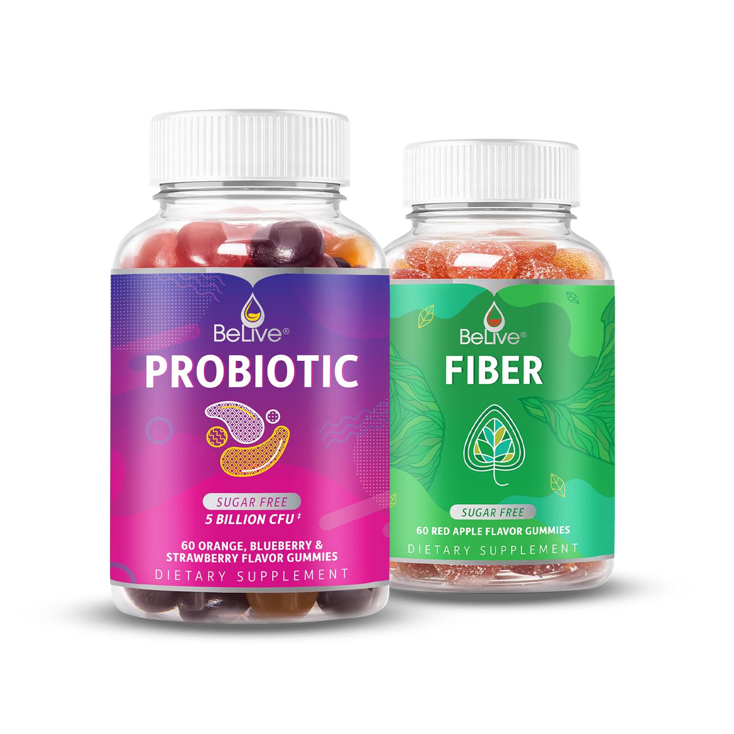 BeLive Healthy Gut Dream Team Bundle Probiotic and Fiber Gummies for Digestive and Gut Health Sugar Free Vegan