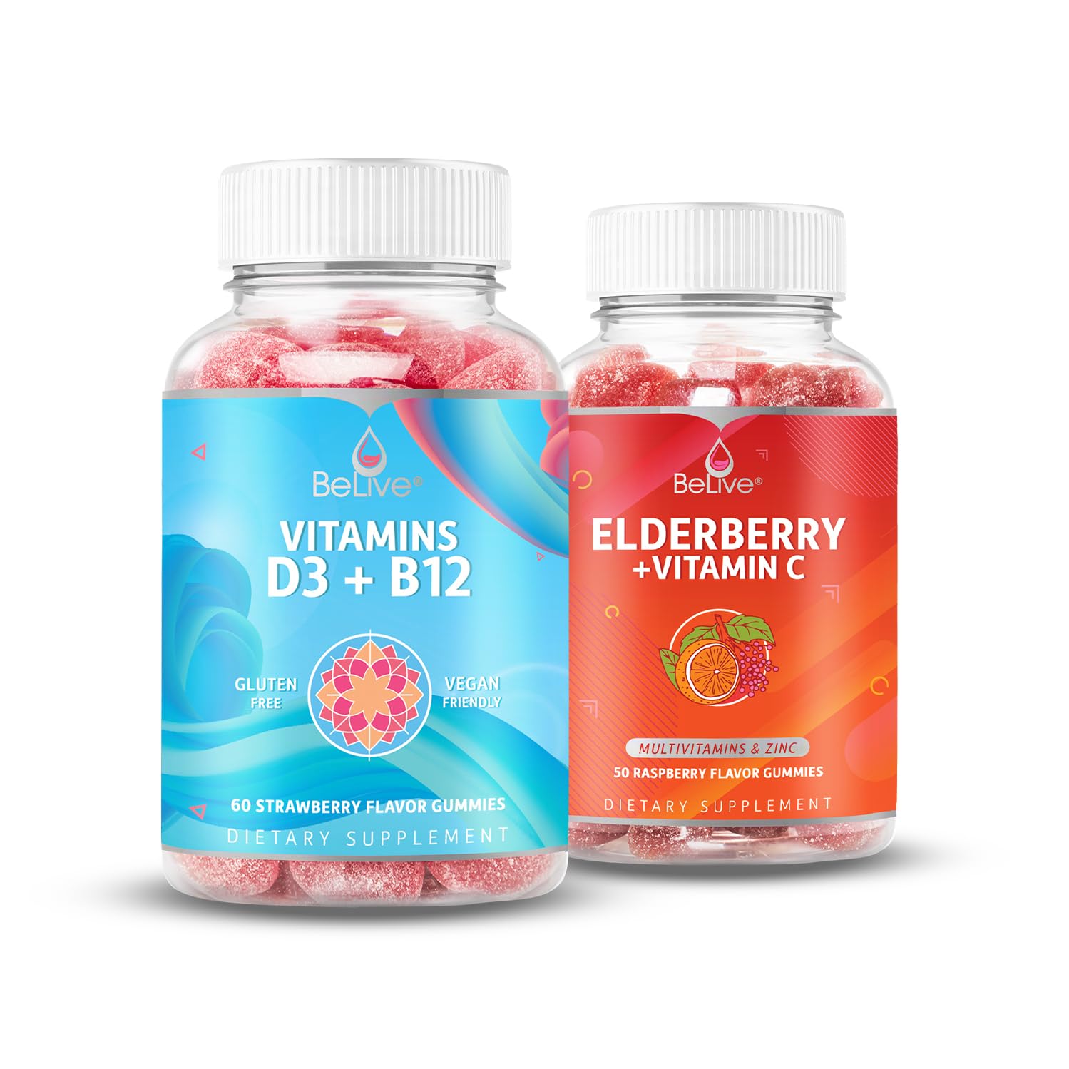 STRONG BONES HEALTHY TEETH: Includes Vitamin D to not just strengthen your immune system, but to also assist in the maintenance of health bones and teeth. B12 Gummies for Adults Kids - Feel strong, all day long with a vitamin B12 boost! B 12 vitamin can help to promote red blood cell health, cognitive function, and even the sleep cycle. It is a vitamin that our bodies have more difficulty absorbing as we age, making a B12 supplement vital for seniors. DOUBLE STRENGTH: 200 mg of Elderberry and 160 mg of Vitamin C provides a high potency vitamin meant to boost your immune defenses. We designed a superior product to help you protect yourself and your loved ones. BeLive Elderberry gummies are suitable for adult and kids. The "Sunshine Vitamin" - Many people absorb insufficient vitamin D from the sun, especially during the winter and flu season. Having inadequate vit D in the body can affect bone and muscle strength, heart health and immunity, making these vitamin D gummies exceptionally important. D3 B12 Vitamins For Optimal Health - Walk on the sunshine with BeLive Vitamin D and B12 gummies! Containing 2000iu D3 and 500mcg B12 per serving, these Vit D vitamins are designed to deliver the body with optimal strength, enhanced overall health and longevity and help it to maintain a healthy immune response.
