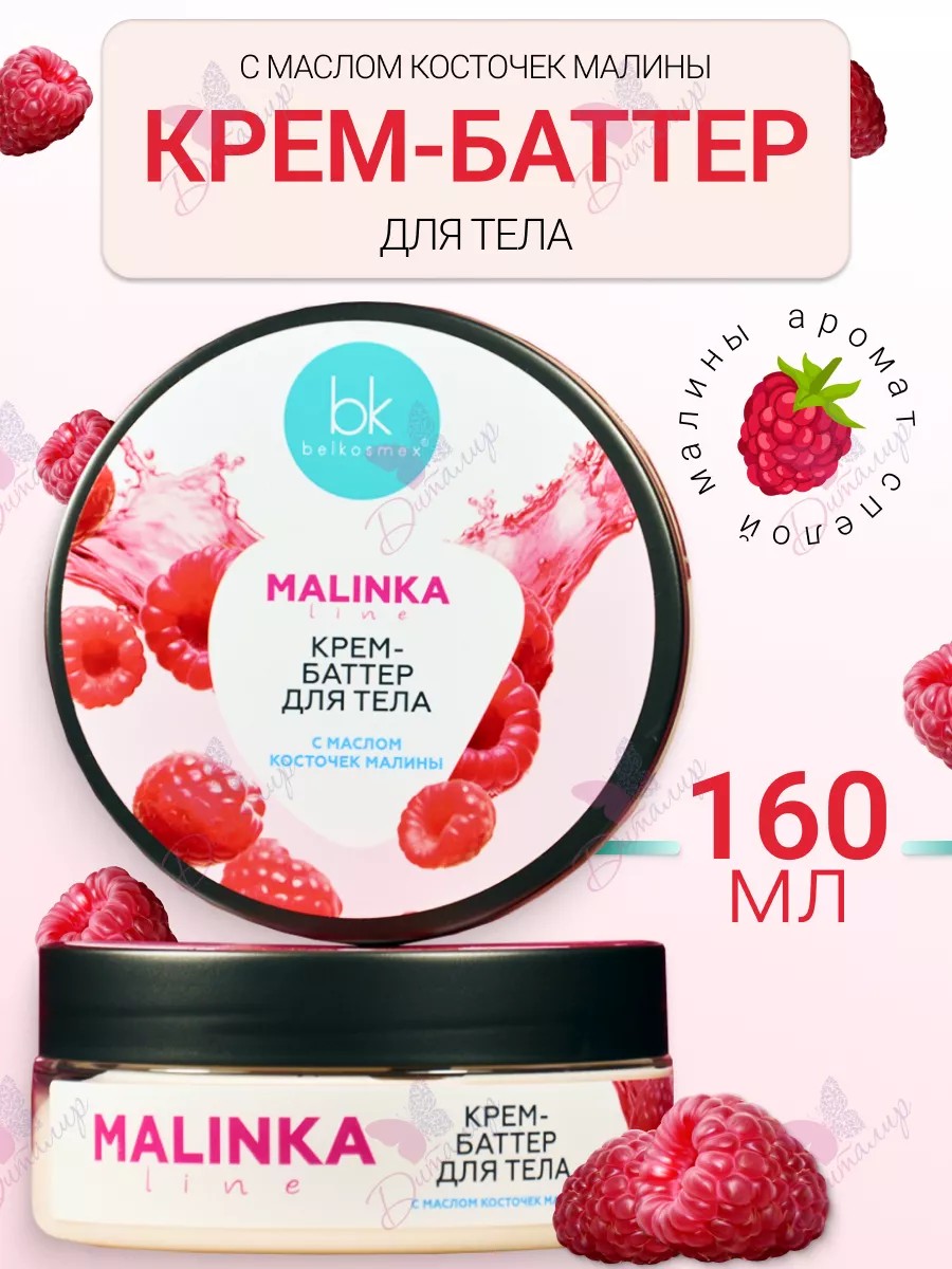 Высокая концентрация питательных и смягчающих масел 15 %. Крем - баттер легко впитывается, делая кожу сияющей и гладкой. Масло косточек малины насыщает кожу полезными веществами, глубоко питает и увлажняет кожу, защищает от фотостарения. Идеален для сухой и очень сухой кожи. Массажными движениями нанести на чистую сухую кожу тела.