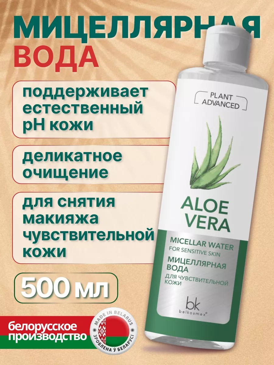 Белорусское уходовое средство БелКосмекс линии Plant Advanced Aloe Vera интенсивное увлажнение и легкое удаление макияжа.