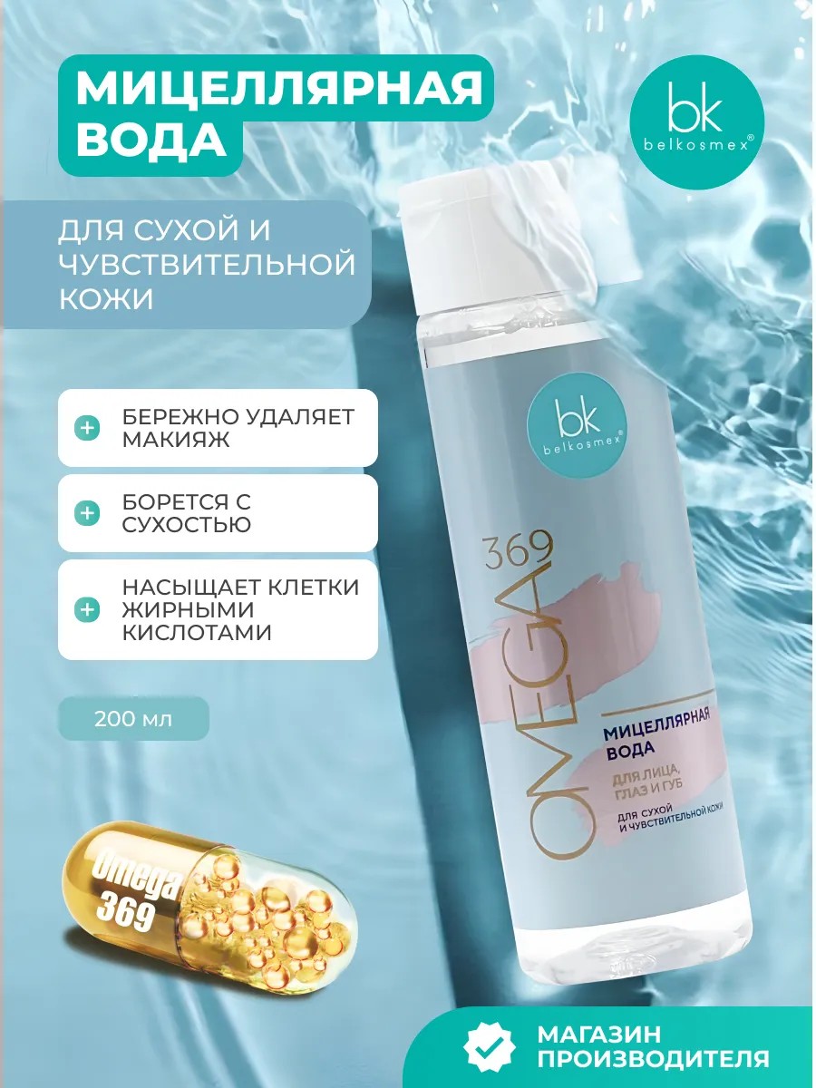 Мицеллярная вода для лица, глаз и губ с витаминным комплексом Omega 3, 6, 9 — это высококачественное базовое средство для ухода за кожей лица.