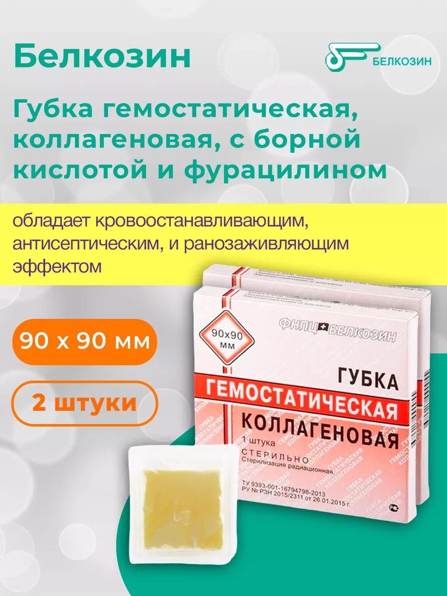 | Комплектация | Губка коллагеновая кровоостанавливающая 2 шт. |