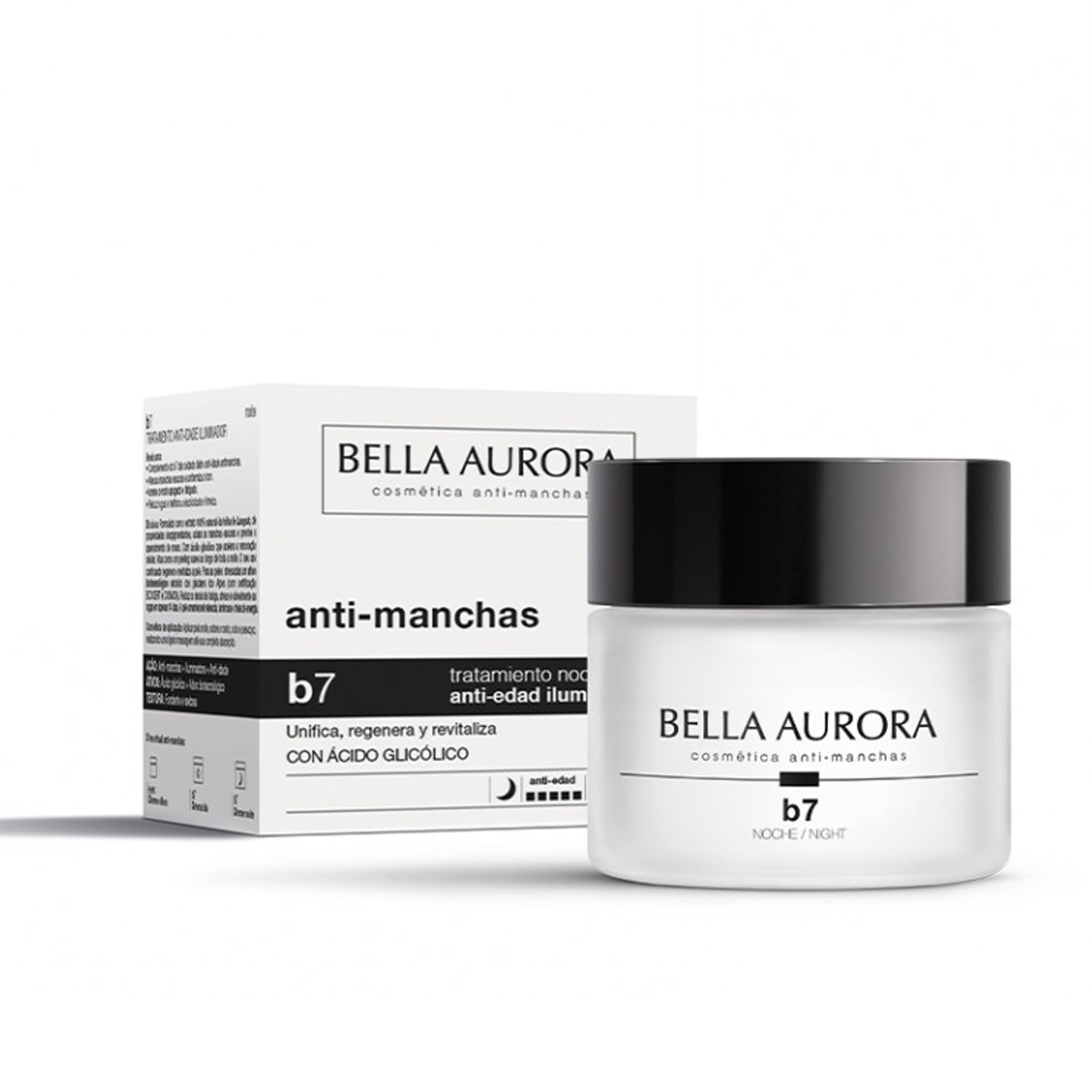 Bella Aurora Night Cream Anti-Manchas y Anti-Edad, 50 ml Antiarrugas Eficacia para Manchas en la Cara y Arrugas Despigmenting Facial and Moisturizing B7EFFECTIVE: Cosmetic brand 100 specialized in anti-white and dark spots, anti-aging creams, despigmentants and products to pigment the skin in cases of hypopigmentation. All of our Bella Aurora products are dermatologically and dentally tested and demonstrated to be effective in a multi-ethnic studio. CÓMO APPLICARLO: Apply at night on all sides, achieving a light massage until it is completely absorbed. Ideal to use the usual way for a better effect. Complementar con la crema de día b7. FÓRMULA: Contains Betaína (anti-inflammatory, anti-inflammatory and moisturizing effects), Matrixyl 3000, Hydroviton Plus (hydrating agents), DN-AURA (Extract of the leaves of the Vietnamese tree Lagsat or Duku), Glical acid, Con active biotechnology (extra of the glaciers of the Alps that reduce signs of fatigue there) and extract of soybean seed. ANTIEDAD AND DESPIGMENTANT CREAM: Prevents loss of elasticity, in addition to repairing and regenerating the skin with effective anti-inflammatory effects and reducing expression lines. Actúa like a smooth peeling throughout the night. Regenerates and revitalizes the skin. B7 Night is an anti-light treatment that removes light to regenerate skin, reduce irritation and heat, compensate for signs of fatigue and increase the natural brightness of skin to create new energy. With anti-edid activities of ultimate generation and natural extracts. Bella Aurora Crema de Noche Anti-Manchas y Anti-Edad, 50 ml Antiarrugas Eficacia para Manchas en la Cara y Arrugas Despigmentante Facial e Hidratante B7EFICACIA: Marca cosmética 100 especializada en anti-manchas blancas y oscuras, cremas antiedad, despigmentantes y productos para pigmentar la piel en caso de hipopigmentación. Todos nuestros productos de Bella Aurora se han testado dermatológica y oftalmológicamente y han demostrado su eficacia bajo estudio multi-étnico. CÓMO APLICARLO: Aplicar por la noche sobre todo el rostro, realizando un ligero masaje hasta su completa absorción. Ideal Usarlo de manera habitual para un mayor efecto. Complementar con la crema de día b7. FÓRMULA: Contiene Betaína (efecto antiarrugas, antiinflamatorio y hidratante), Matrixyl 3000, Hydroviton Plus (agentes hidratantes), DN-AURA (Extracto de las hojas del árbol vietnamita Lagsat o Duku), Ácido glicólico, Con activo biotecnológico (extraído de los glaciares de los Alpes que reduce signos de fatiga y estrés) y extracto de semilla de soja. CREMA ANTIEDAD Y DESPIGMENTANTE: Previene la pérdida de elasticidad, además de reparar y regenerar la piel con efecto antiarrugas y reduce líneas de expresión. Actúa como un peeling suave durante toda la noche. Regenera y revitaliza la piel. B7 Noche es un tratamiento anti-edad iluminador desarrollado para regenerar la piel mientras duermes, reducir arrugas y manchas, paliar los signos de fatiga y devolver la luminosidad natural de la piel para empezar un nuevo día con energía. Con activos anti-edad de última generación y extractos naturales.