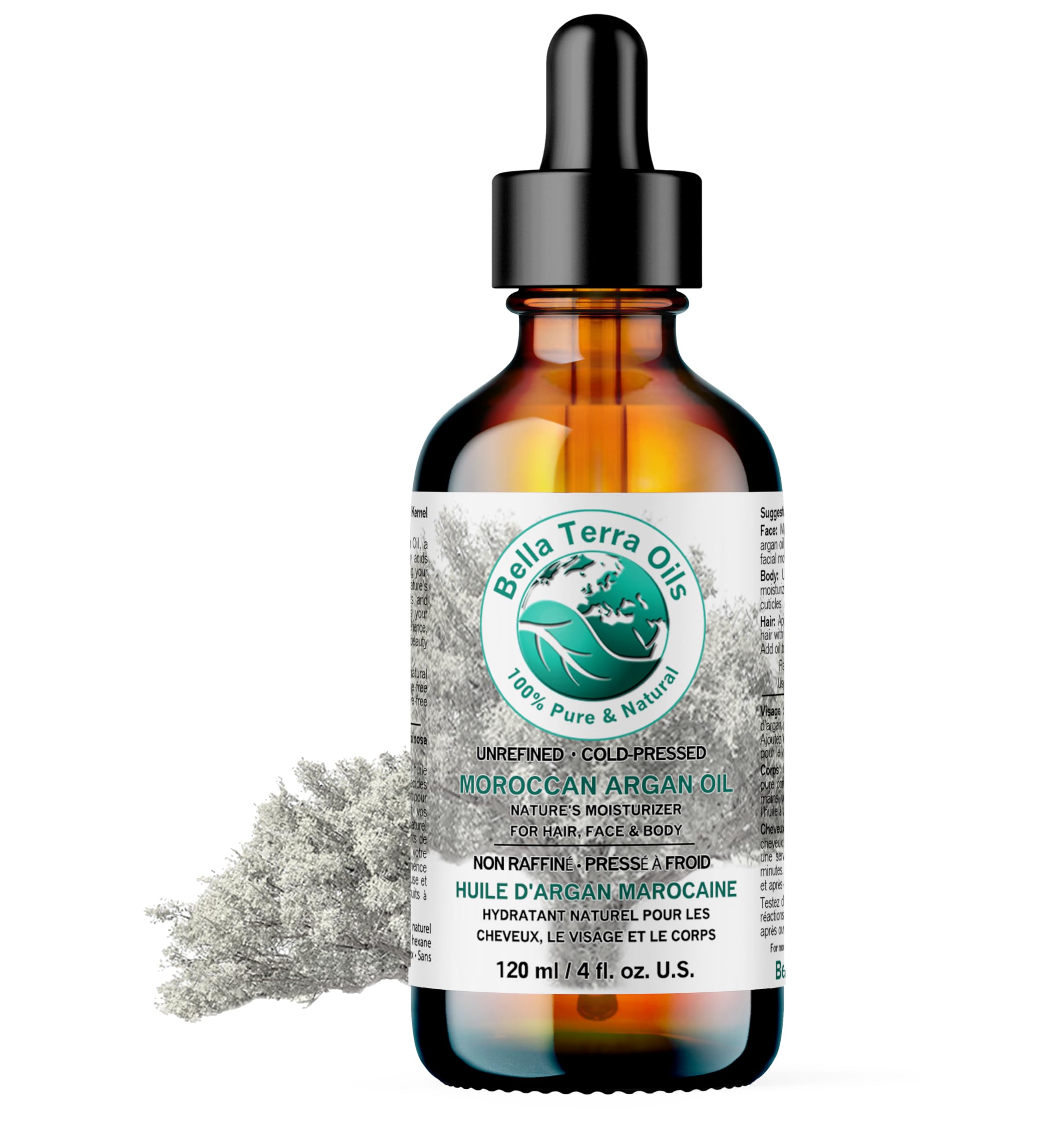 Bella Terra Oils 100% Pure Moroccan Argan Oil 120ml - Organic Cold-Pressed Unrefined Hexane-Free Natural Moisturizer for Skin & Hair Non-Comedogenic Anti-Aging Ideal for Sensitive and Acne-Prone Skin 120 ml (Pack of 1)
