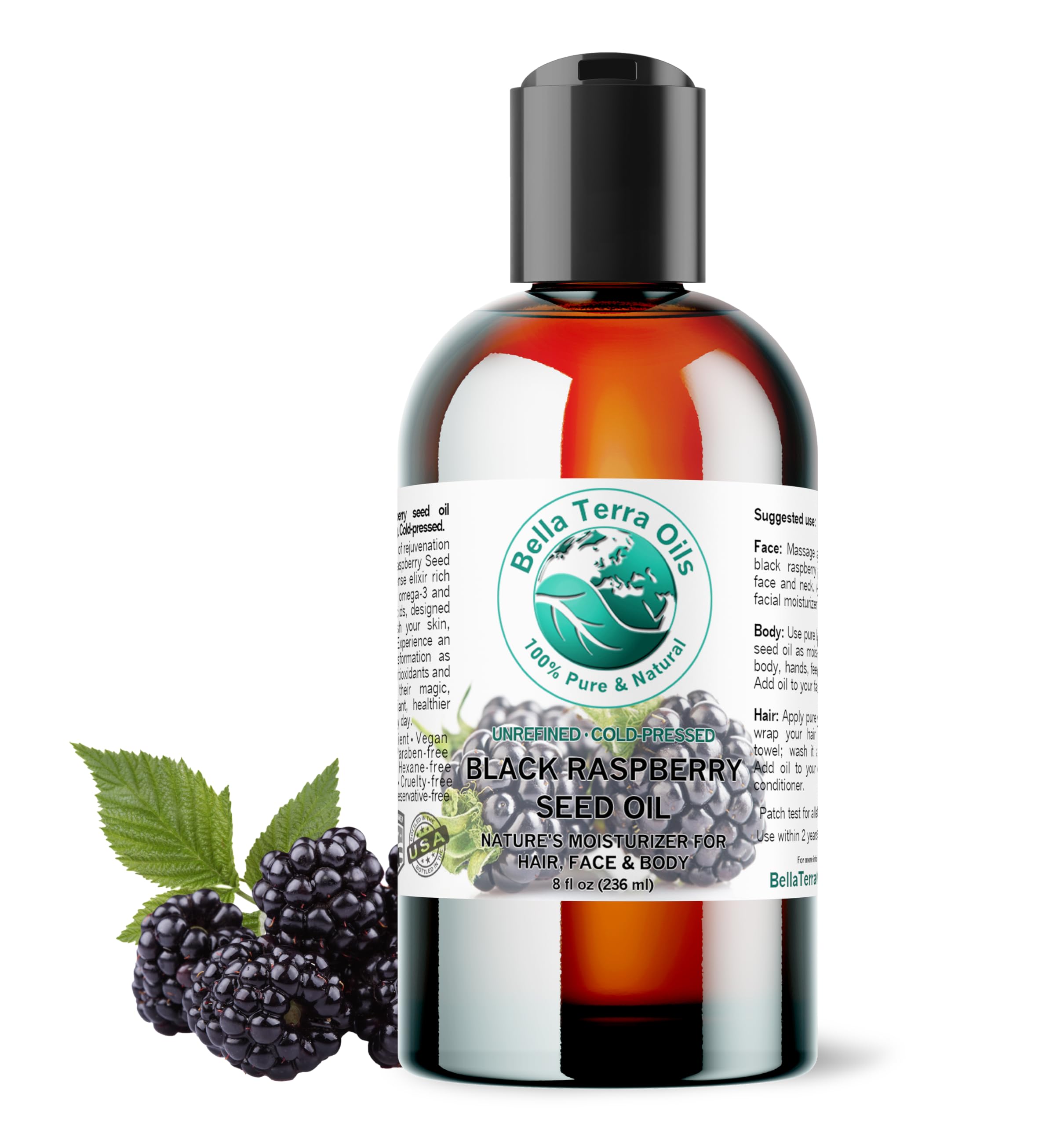 Bella Terra Oils - Black Raspberry Seed Oil 8 oz - Natural Elixir Enhanced with Ellagic Acid & Vitamin A Cold-Pressed Cosmetic Secret for Radiant Skin 8 Fl Oz (Pack of 1)