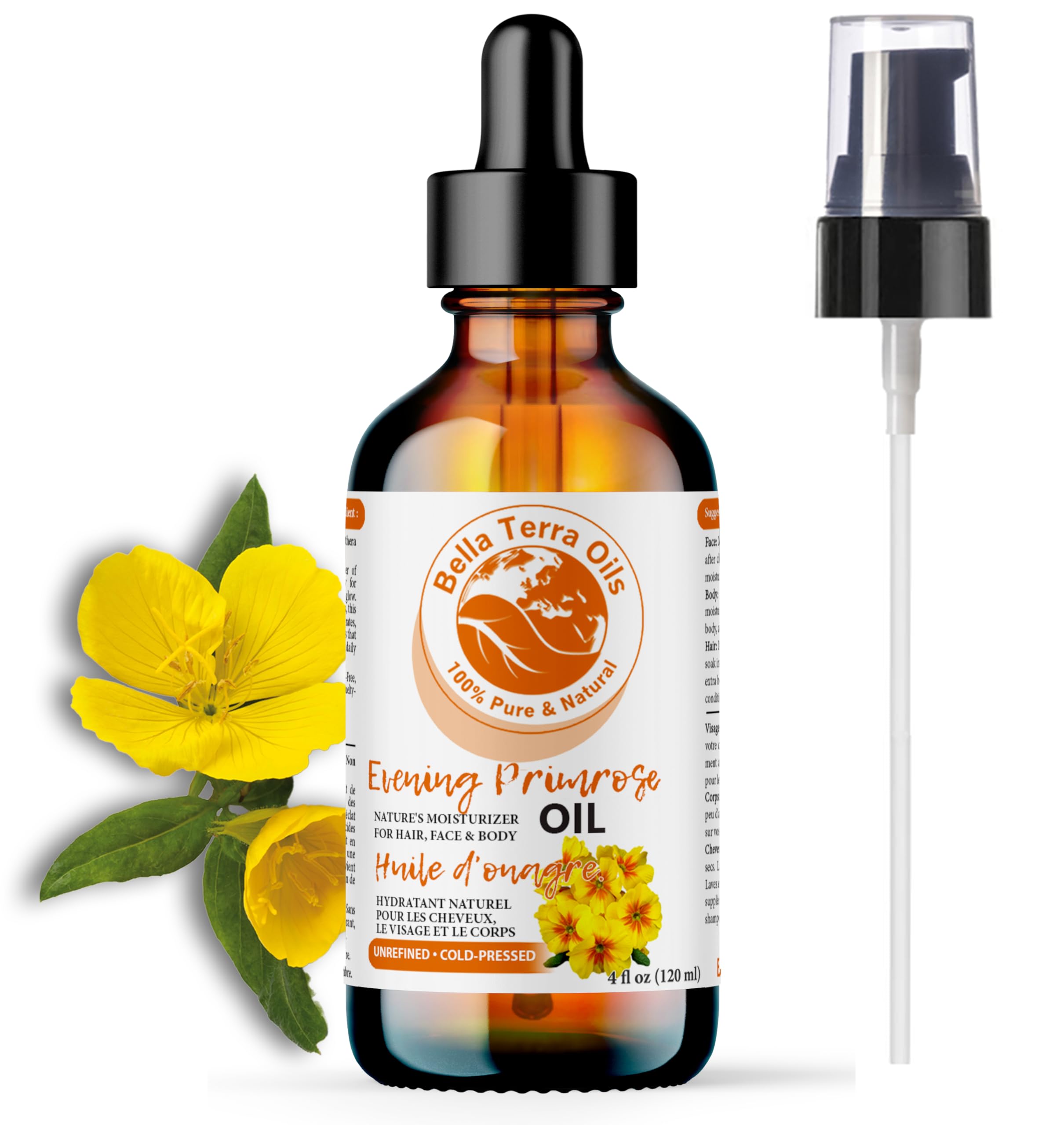 Bella Terra Oils Evening Primrose Oil. 120ml. 100% Pure. Cold-pressed. Unrefined. All Natural. Rich in GLA. Chemical-free. Soothes Dry Skin. Nourishes Skin & Hair. 120 ml (Pack of 1)