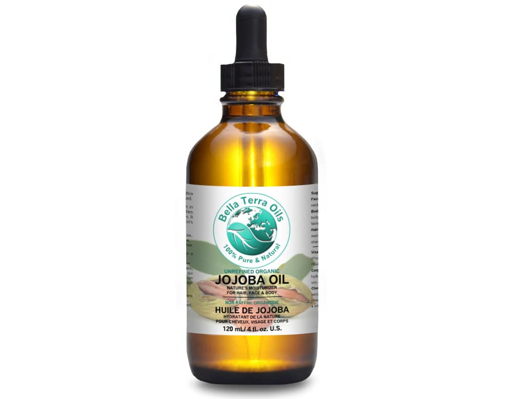 Bella Terra Oils Jojoba Oil. 4 oz. 100% Pure Cold-pressed Unrefined Organic Lightweight Natural Moisturizer for Skin Hair 4 Fl Oz (Pack of 1)