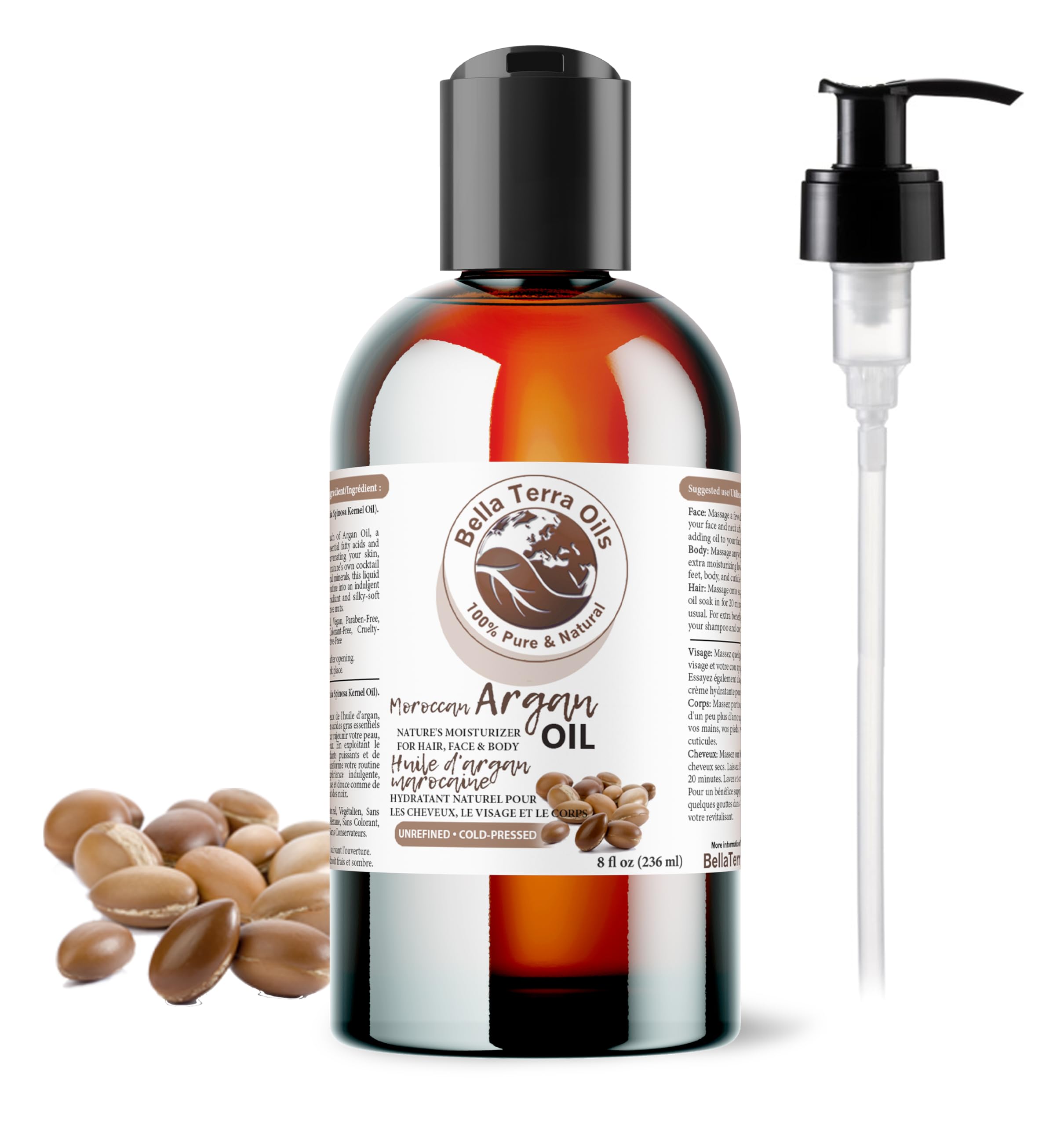 Bella Terra Oils Moroccan Argan Oil. 236ml. 100% Pure. Cold-pressed. Unrefined. Non-comegodenic. Rich in Vitamin E. Natural Moisturizer for Skin Hair. 236 ml (Pack of 1)