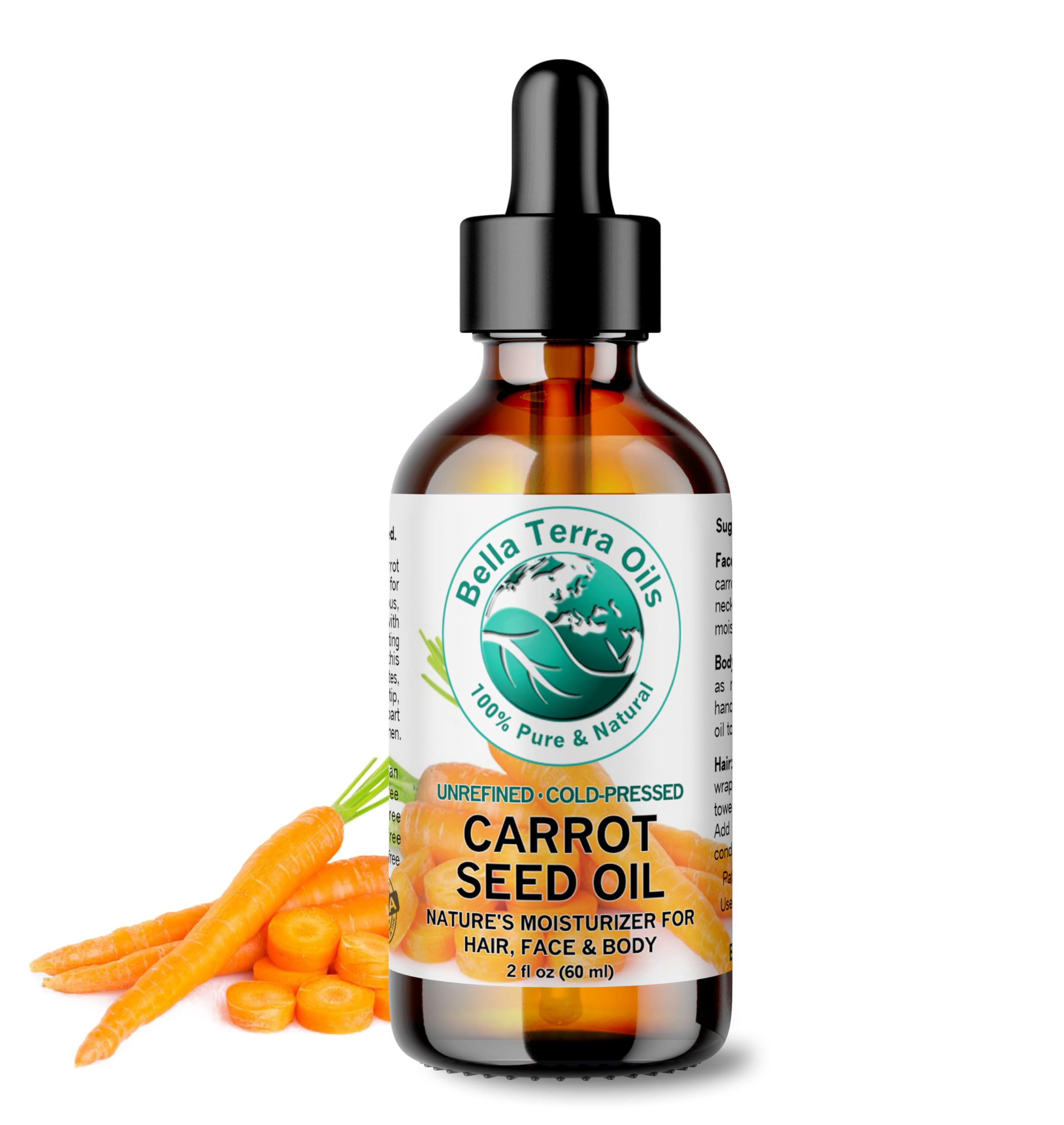 Bella Terra Oils - Organic Carrot Seed Oil 2 oz - Cold-Pressed Elixir Abundant in Vitamin A & E Beta-Carotene Richness Ideal for Nourished Skin Radiance 2 Fl Oz (Pack of 1)
