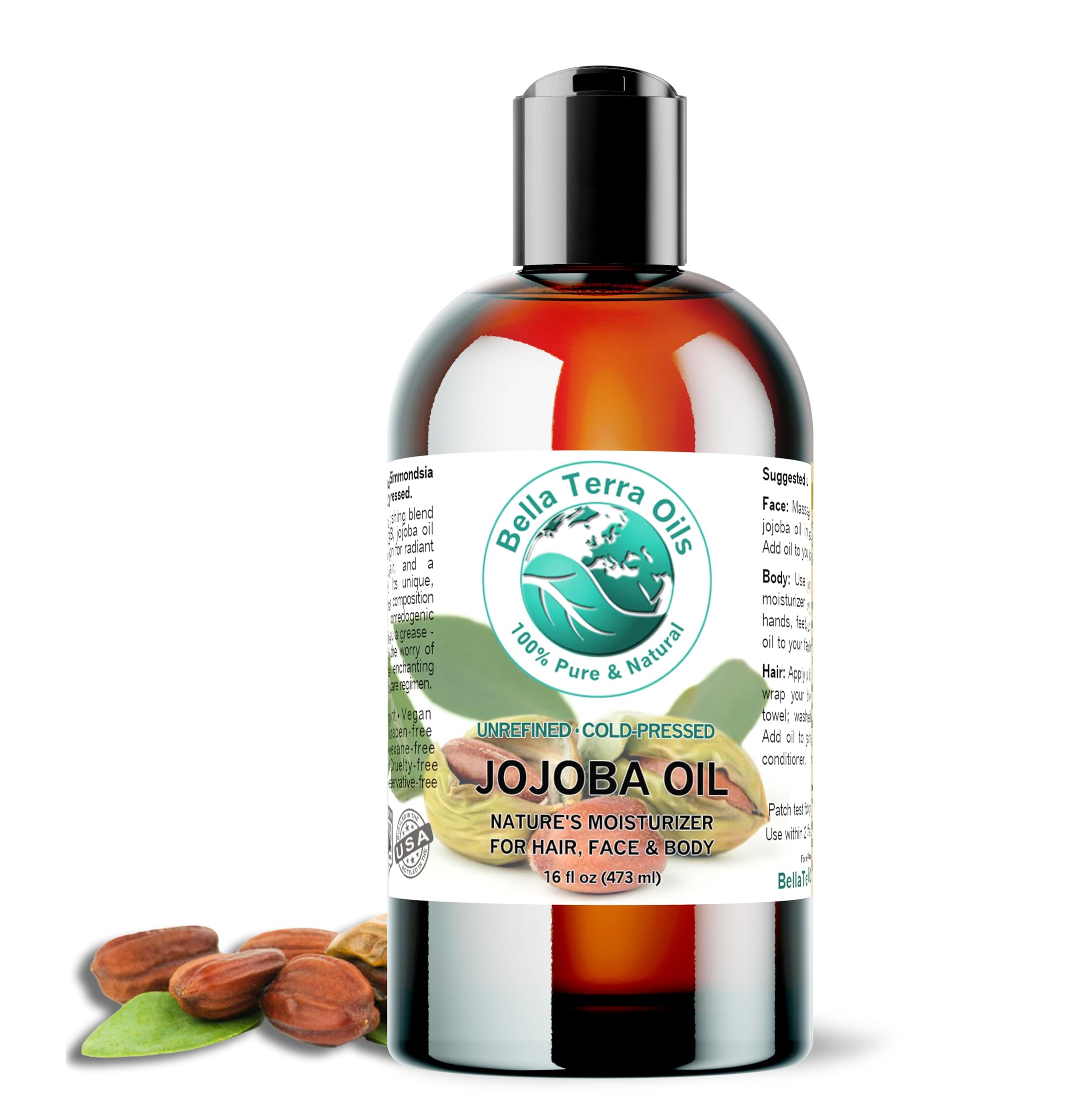 Bella Terra Oils - Organic Jojoba Oil 16 oz - Cold-Pressed Brilliance Elevate Your Nail Oil Regimen with Vitamin-Rich Organic Jojoba Goodness 16 Fl Oz (Pack of 1)