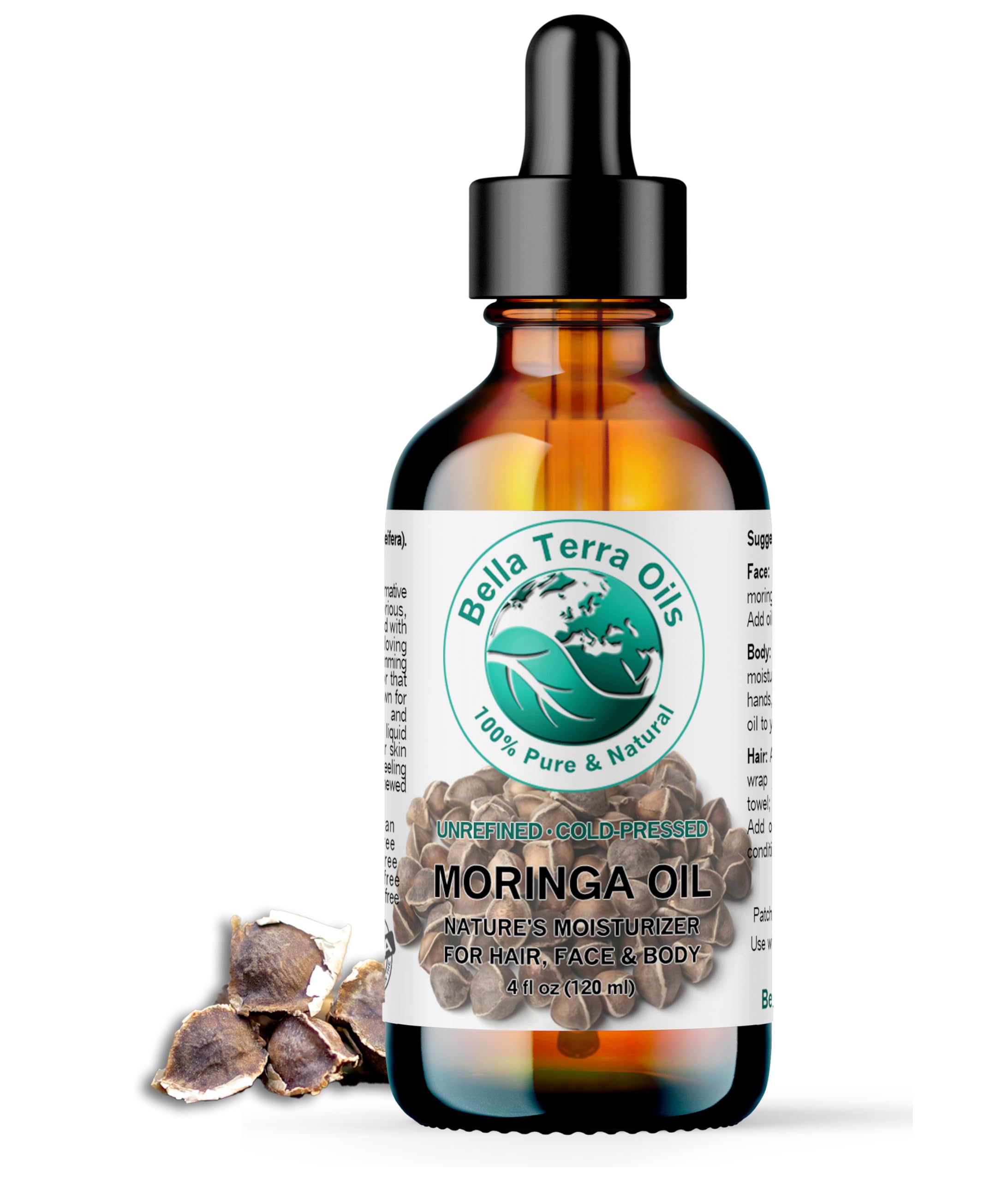 Bella Terra Oils - Organic Moringa Oil 4 oz - Celebrating Pure Premium Organic Moringa Enriched with Antioxidants Best for Nourishing Skin s Natural Glow 4 Fl Oz (Pack of 1)