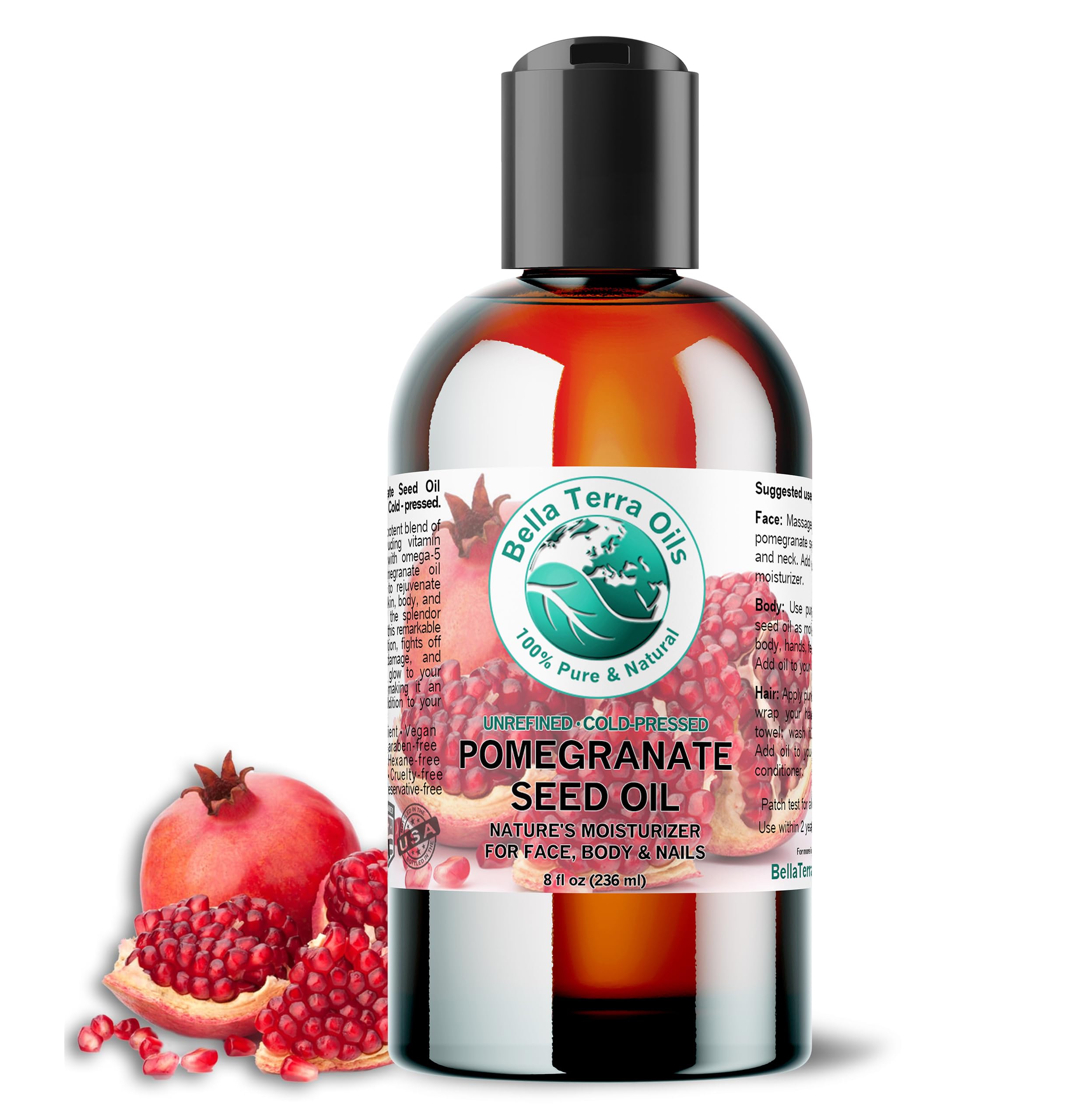 Bella Terra Oils - Organic Pomegranate Seed Oil 8 oz - Rich in Nutrients for Skin Hydration Cold-Pressed from Organic Pomegranate Kernels 8 Fl Oz (Pack of 1)
