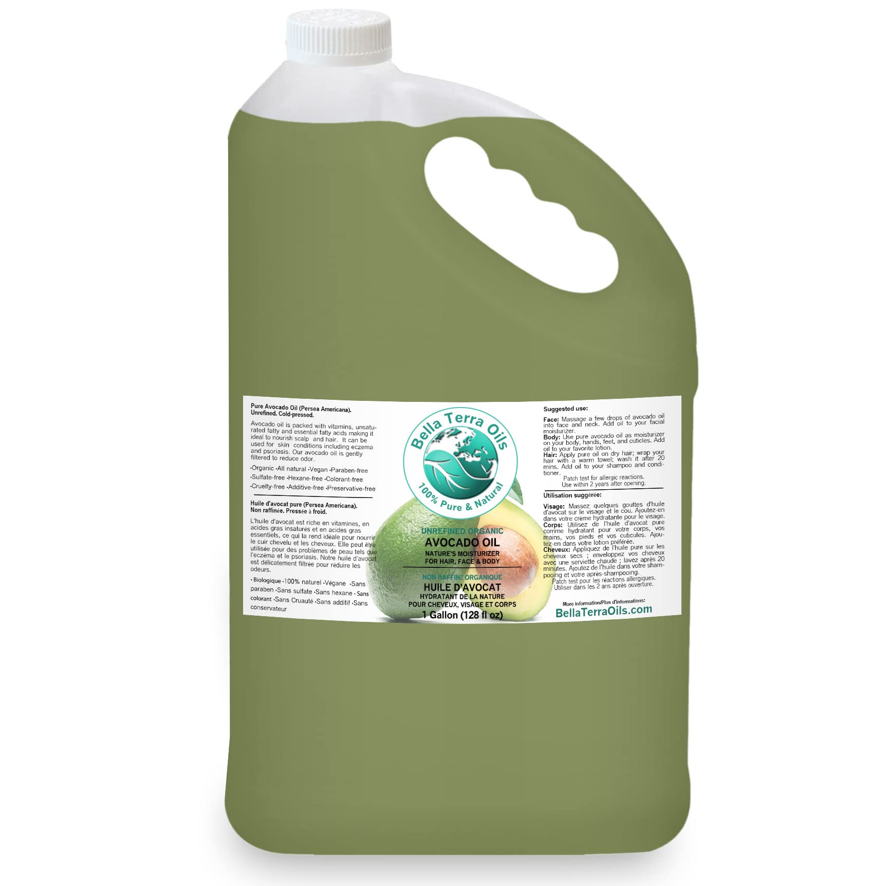 Bella Terra Oils Premium Avocado Oil for Skin 1 gallon Vitamin-Rich Skin & Hair Enhancer Non-Greasy Deeply Moisturizing
