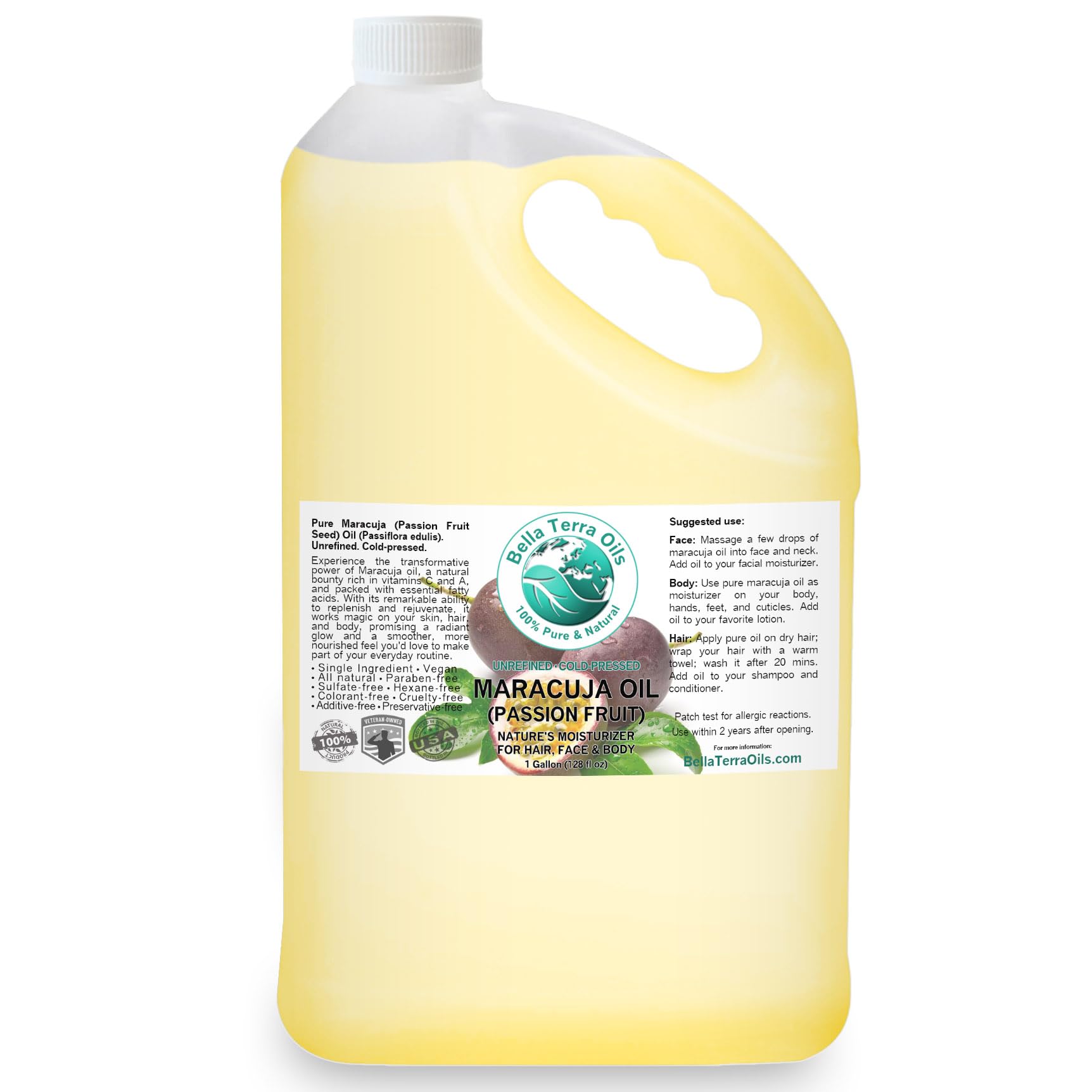 Bella Terra Oils Pure Maracuja Oil for Lustrous Hair & Radiant Skin 1 gallon Lightweight & Non-Greasy Shine Enhancer