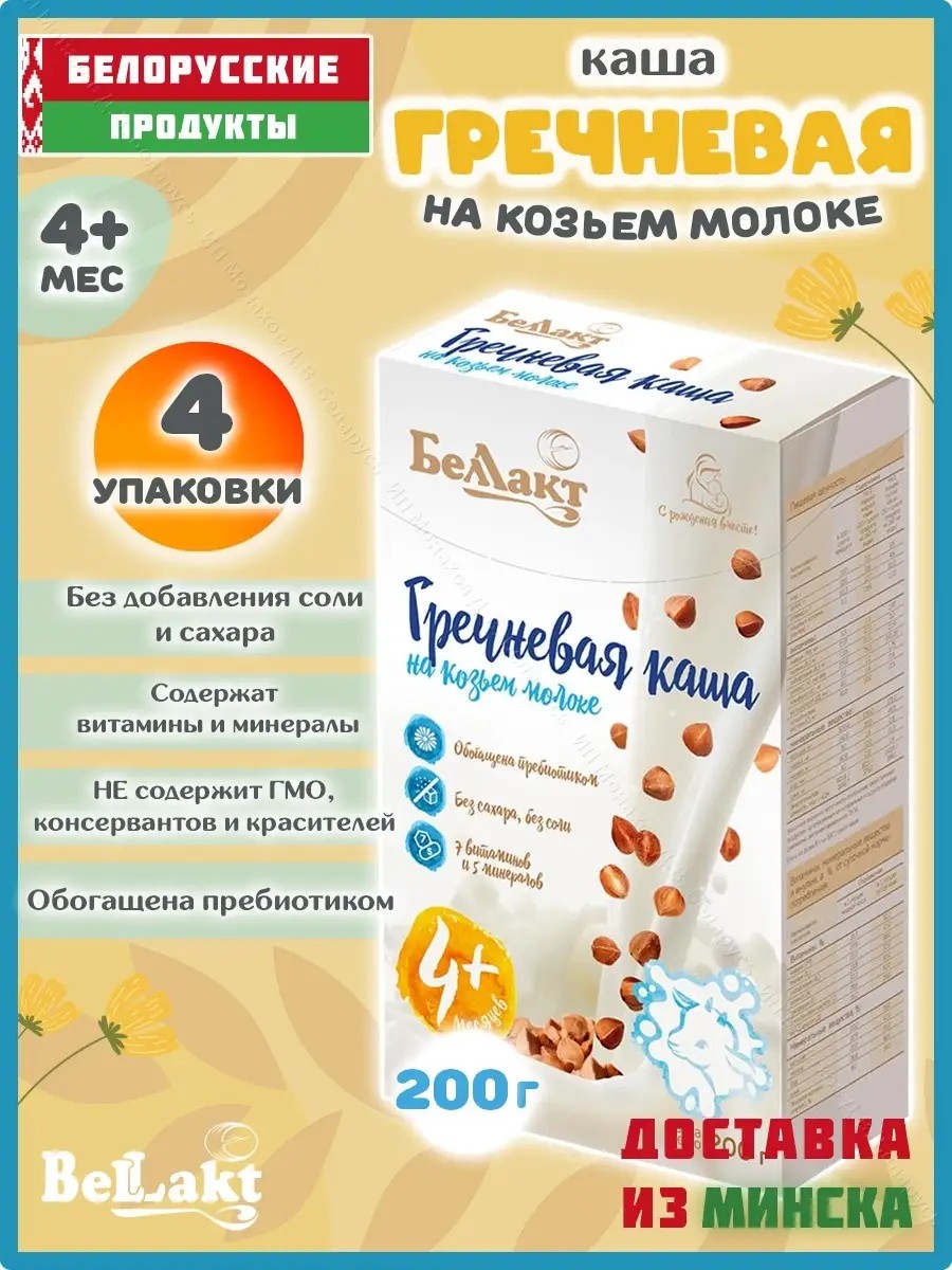 Как известно, каша составляет базу кормления маленьких детей. Кашка гречневая молочная от белорусского производителя “Беллакт” - это полностью сбалансированная еда. Она включает в себя все необходимое для полноценного развития ребенка. Содержащееся в ней козье молоко максимально приближено к материнскому грудному, реже вызывает аллергии и проблемы с пищеварением. Полный витаминный и минеральный комплекс: А, С, РР, Е, Д, В1, В2, кальций, железо, йод, цинк, натрий значительно обогащает рацион. Витамины, микроэлементы и минералы обеспечивают стабильную работу сердечно-сосудистой, пищеварительной и нервной систем, положительно влияют на умственную деятельность, рост костей, регулируют правильный обмен веществ. А пребиотик инулин способствует нормализации микрофлоры кишечника, нормальному перевариванию пищи и повышению защитных функций организма. Данное детское питание относится к классу премиум и предназначено для малышей, начиная с 4+ месяцев жизни. Для первого прикорма нужно развести сухой быстрорастворимый продукт в воде или соке и дать попробовать крохе 1-2 чайные ложечки. При необходимости можно подкормить малютку не только в дневное, но и в ночное время жидкой смесью из бутылочки. Эту зерновую и злаковую еду без соли, сахара и вредных добавок, на натуральной растительной основе приемлемо давать не только грудничкам. Она отлично подойдет дошколятам и ребятишкам школьного возраста. Ее можно предложить на завтрак перед школой и садиком.