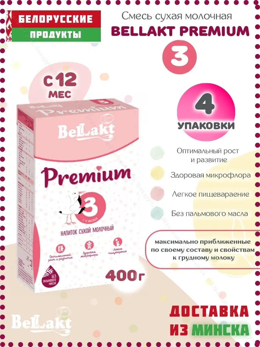 Проложите путь к здоровому и быстрому развитию вашего малыша! С 12+ месяцев уверенно вводите в рацион младенца питательную молочную смесь от известного белорусского бренда «Беллакт». Как лучшее профилактическое решение, детское питание высшего качества Premium 3 предназначено для деток в возрасте от 1 года и старше. Оно обогащает ребенка всеми необходимым витаминами, макро- и микроэлементами для полноценного и стремительного роста, закладывает надежный фундамент для благополучия.