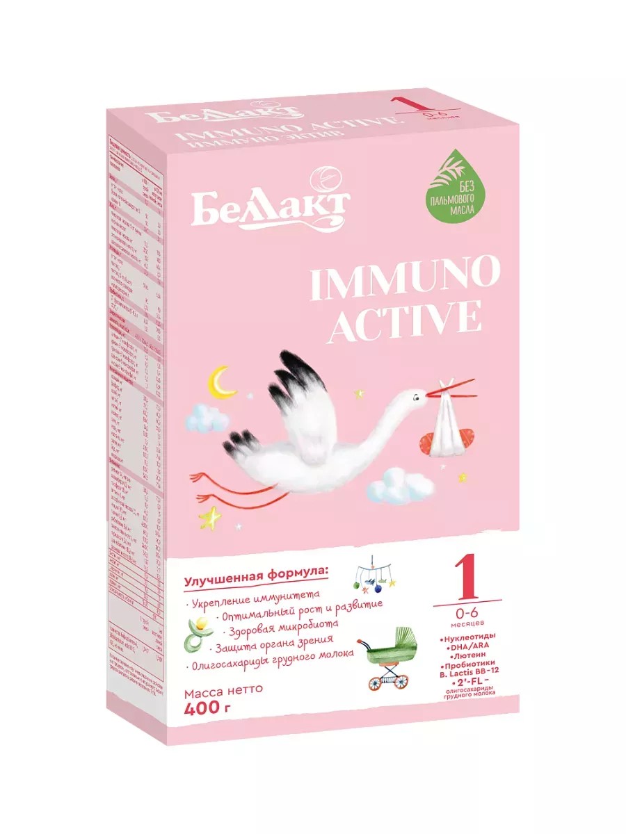 Breast milk, unique in its composition and properties, is the ideal food for infants in the first year of life. When breast milk is unavailable or insufficient, highly adapted formulas are introduced into infants' diets, which are as close as possible to breast milk in composition and properties. Bellakt Immuno Active is an innovative line of baby food with breast milk oligosaccharides. Its composition and functional properties are optimally similar to breast milk. Contains 2-FL oligosaccharides, omega-3 and omega-6 fatty acids, optimal protein levels, bifidobacteria, nucleotides, lutein, the prebiotic FOS, vitamins, macro- and microelements, and other biologically active substances for optimal growth and development. Does not contain palm oil.