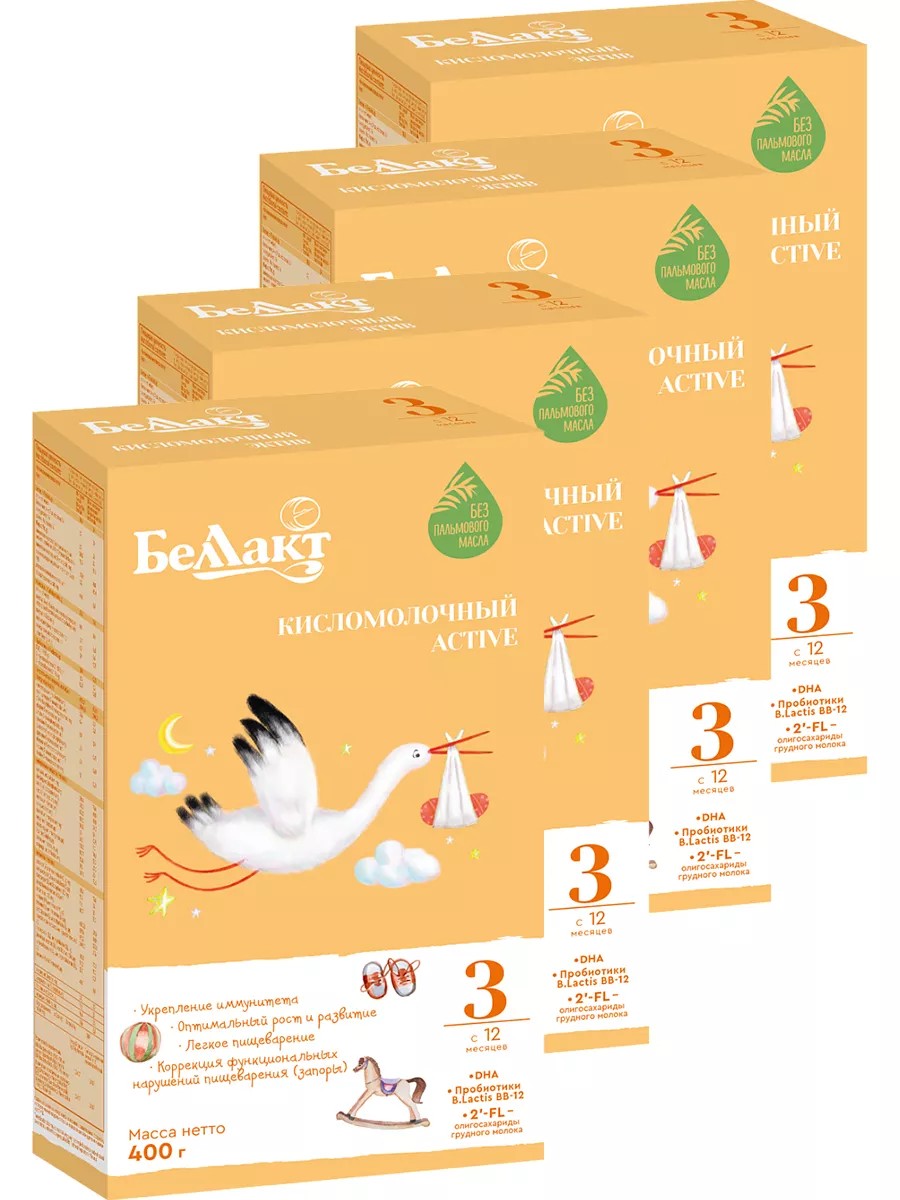 Беллакт Детская смесь Кисломолочный Active 3 в комплекте из 4 пачек