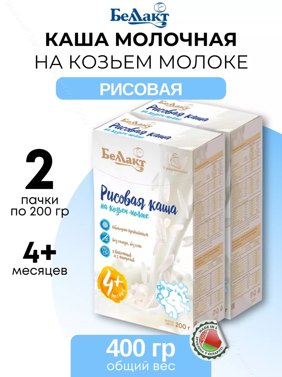 Ведущее белорусское предприятие Беллакт уже несколько десятилетий выпускает экологически чистое, качественное детское питание. Предлагаем вашему вниманию кашу рисовую молочную от этого бренда! Она изготовлена по инновационной технологии и предназначена для первого прикорма младенцев, начиная с 4 месяцев. Относится к премиум-классу, не содержит сахара, соли и вредных добавок, служит для малышей важным источником углеводов. Козье молоко максимально приближено к материнскому грудному, реже вызывает проблемы с пищеварением и аллергии. По мере роста ребенка нужно разнообразить его повседневный рацион, чтобы организм получал сбалансированное меню с необходимыми для полноценного развития микроэлементами и минералами. Поэтому производитель сделал все возможное, чтобы его злаковый зерновой продукт был полезен и хорошо усваивался маленькими детьми. Быстрорастворимая сухая смесь выполнена на растительной и полностью натуральной основе. В ней присутствует богатый витаминный и минеральный комплекс ( А, В, С, Д, Е, РР, кальций, железо, йод, натрий, цинк) и содержится пребиотик инулин, который положительно влияет на состав и активность бифидо- и лактобактерий, способствует стимуляции переваривания пищи, образованию жирных кислот и повышению иммунитета. Это блюдо понравится не только крохам, но и ребятишкам постарше. Младенцам его можно давать даже в ночное кормление, а детсадовцам и ученикам - готовить на завтрак перед школой и садиком.