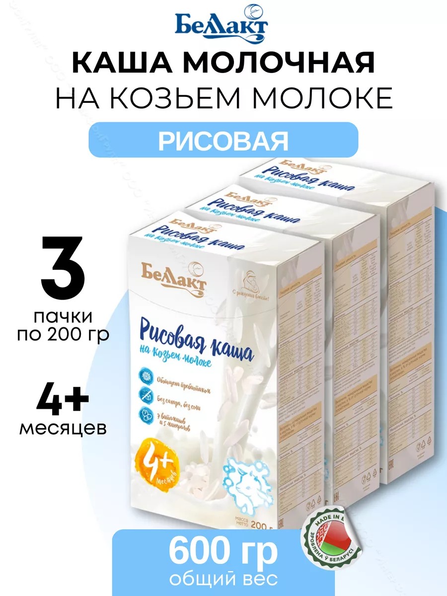Ведущее белорусское предприятие Беллакт уже несколько десятилетий выпускает экологически чистое, качественное детское питание. Предлагаем вашему вниманию кашу рисовую молочную от этого бренда! Она изготовлена по инновационной технологии и предназначена для первого прикорма младенцев, начиная с 4 месяцев. Относится к премиум-классу, не содержит сахара, соли и вредных добавок, служит для малышей важным источником углеводов. Козье молоко максимально приближено к материнскому грудному, реже вызывает проблемы с пищеварением и аллергии. По мере роста ребенка нужно разнообразить его повседневный рацион, чтобы организм получал сбалансированное меню с необходимыми для полноценного развития микроэлементами и минералами. Поэтому производитель сделал все возможное, чтобы его злаковый зерновой продукт был полезен и хорошо усваивался маленькими детьми. Быстрорастворимая сухая смесь выполнена на растительной и полностью натуральной основе. В ней присутствует богатый витаминный и минеральный комплекс ( А, В, С, Д, Е, РР, кальций, железо, йод, натрий, цинк) и содержится пребиотик инулин, который положительно влияет на состав и активность бифидо- и лактобактерий, способствует стимуляции переваривания пищи, образованию жирных кислот и повышению иммунитета. Это блюдо понравится не только крохам, но и ребятишкам постарше. Младенцам его можно давать даже в ночное кормление, а детсадовцам и ученикам - готовить на завтрак перед школой и садиком.