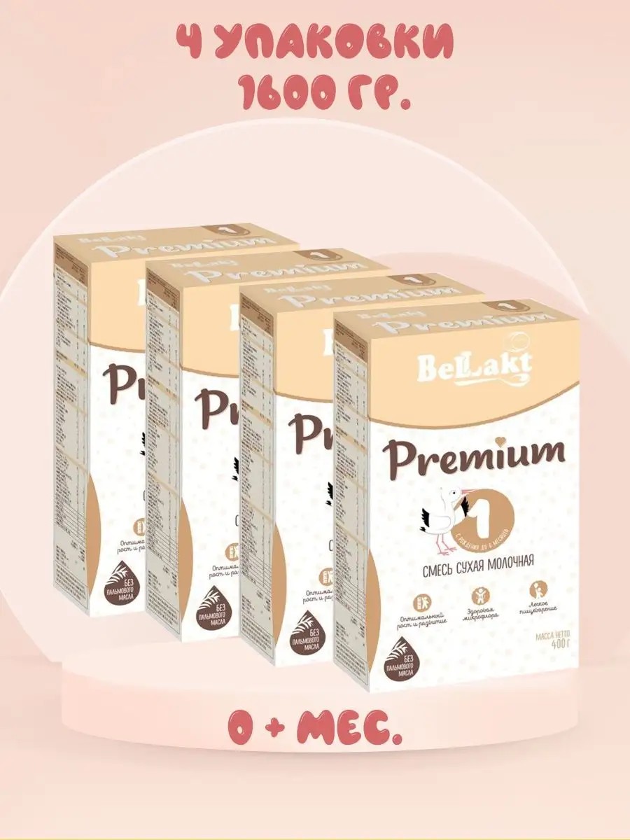 Смесь сухая молочная Беллакт для питания детей раннего возраста является гарантом наивысшего качества для вашего ребенка. Каши Bellakt это комфортное кормления вашего малыша с первых дней жизни.Компания «Беллакт» — единственный в Беларуси и один из крупнейших на территории СНГ производителей сухого детского питания. Это современное, высокотехнологичное предприятие, производящее детское питание, молочные продукты, питание для беременных и кормящих женщин. В линейки продукции входят детские смеси, обогащенные витаминами, минералами и бифидобактериями, адаптированные конкретно под вашего ребенка и максимально приближенные к грудному молоку.Смесь сухая молочная для питания детей раннего возраста "Bellakt Premium 1"Идеальным продуктом питания для детей первого года жизни является грудное молоко, уникальное по своему составу и свойствам.При его отсутствии или недостаточном количестве в питание детей вводят высокоадаптированные смеси, максимально приближенные по своему составу и свойствам к грудному молоку. Такой смесью является новая смесь Bellakt Premium : Оптимальное количество белков (сывороточных белков 60 % - в 1-ой формуле);ARA и DHA - особые липиды, содержащиеся в грудном молоке и необходимые для полноценного развития иммунитета, головного мозга и органа зрения ребенка;40% жира составляет молочный жир, способствующий правильному психомоторному развитию;Углеводный компонент представлен 100% лактозой в 1-ой формуле, способствующий улучшению переваривания и усвоения;Пребиотики (ГОС/ФОС) для формирования здоровой кишечной микрофлоры и легкогопищеварения;Живые бактерии - пробиотики B.Lactis BB12 способствуют поддержанию баланса здоровой микрофлоры кишечника;Витамины, макро-и микроэлементы, необходимые для оптимального роста и развития ребенка;Лютеин – определяет структуру и функцию сетчатки глаза, защищает орган зрения;Нуклеотиды стимулируют созревание иммунной системы, улучшают рост и развитие клеток слизистой кишечника;Аналогичные товары: Малютка молочная смесь / Нестожен / NAN 1 / Nutrilon Premium / Детские смеси Состав: Молоко обезжиренное; лактоза; сливки; растительные масла; высокоолеиновое подсолнечное, соевое, кокосовое; концентрат сывороточных белков; пребиотики: олигогалактоза (ГОС), олигофруктоза (ФОС); масло, содержащее докозагексаеновую кислоту DHA (рафинированный рыбий жир, смесь токоферолов, аскорбил пальмитат); масло, содержащее арахидоновую кислоту (ARA); минеральные вещества: кальция лактат, магния хлорид, калия цитрат, натрия цитрат; витаминный премикс; С (L-аскорбат натрия), РР (никотинамид). D-пантотенат кальция. А (ретинола ацетат). В1 (тиамина мононитрат), В2 (рибофлавин). В6 (пиридоксин гидрохлорид). К (фитоменадион), Вс (фолиевая кислота). Д3 (холекальциферол). Е (D-альфа-токоферол). B12 (цианкобаламин). D-биотин. витаминно-аминокислотный премикс; инозит. L-карнитин, холин, таурин; лютеин; минеральный премикс; меди сульфат, йодид калия, железа сульфат, марганца сульфат, натрия селенит, цинка сульфат; нуклеотидный премикс; цитидин-5'-монофосфат, уридин-5'-монофосфат, гуанозин-5'- монофосфат, аденозин-5-монофосфат, инозин-5'-монофосфат; бактериальный концентрат бифидобактерий Bifidobacterium lactis BB-12