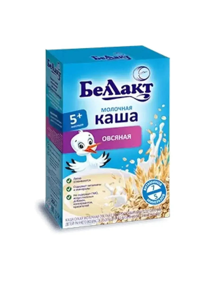 Беллакт Каша молочная овсяная с 5 месяцев 200 гр. Каша молочная овсяная предназначена детям в качестве прикорма с 5 месяцев. Овсяная крупа содержит незаменимые аминокислоты метионина и магния; необходимые для нормальной деятельности центральной нервной системы ребенка; содержит в большом количестве натуральные антиоксиданты вещества; повышающие сопротивляемость организма ребенка к различным инфекциям. Молочная каша без добавления сахара и соли. Не содержит ГМО, искусственных добавок, консервантов, красителей. Содержит 10 витаминов и 9 минералов. Легко усваивается. Хорошо растворяется.